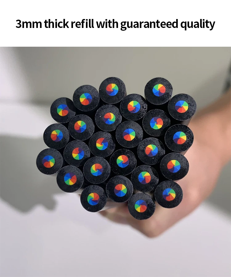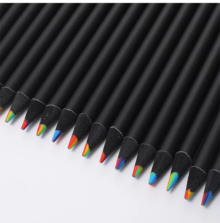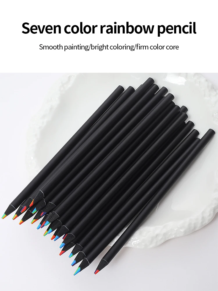 Angel Mark 7 ألوان قلم رصاص بألوان قوس قزح حامل قلم أسود بسمك 3 مم، قلم ألوان عالي الجودة ومتين، قلم سحري رصاص متطور ذو طبقات ناعمة قطعة واحدة قلم رصاص سبعة ألوان 1/2/3/6/12 قطعة بيع