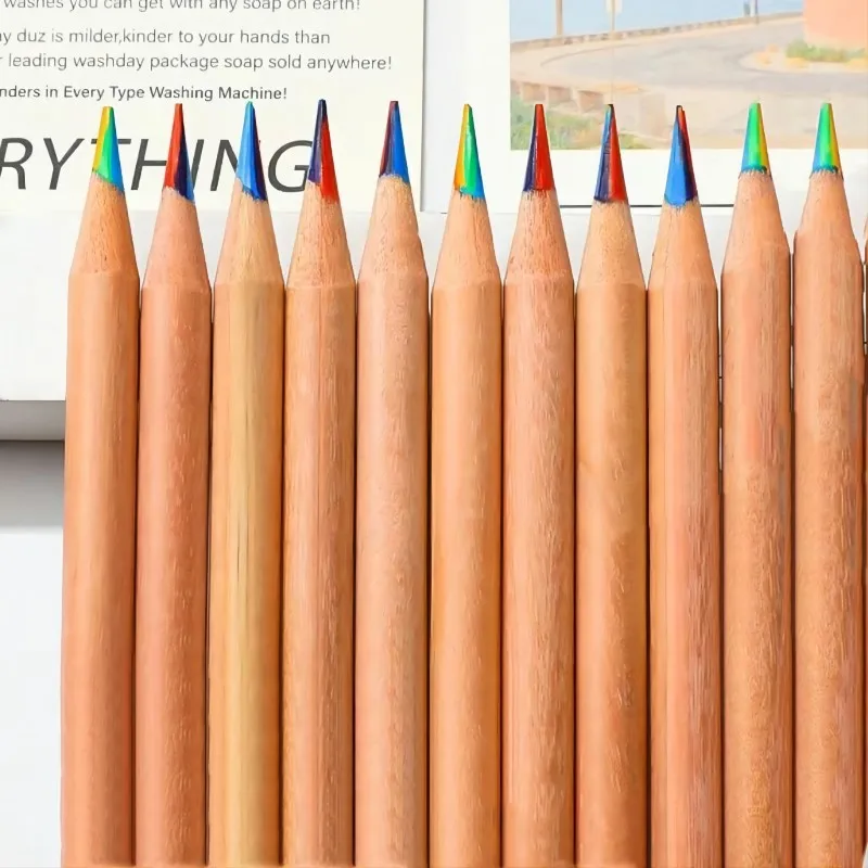 12 قطعة من أقلام الرصاص الملونة بألوان قوس قزح للأطفال من AngelMark، أقلام تلوين متدرجة مركزية، لوحة فنية، قرطاسية رسم 3 مم 7 ألوان