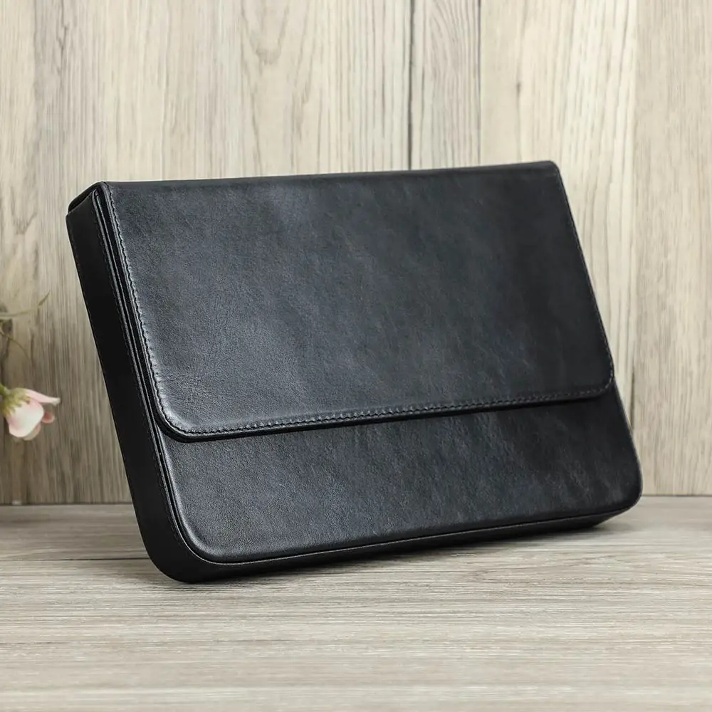 فاخر جلد طبيعي 12 فتحات قلم حبر صندوق مكتب مدرسة القرطاسية القلم كيس التخزين حامل مع علبة القلم القابلة للإزالة