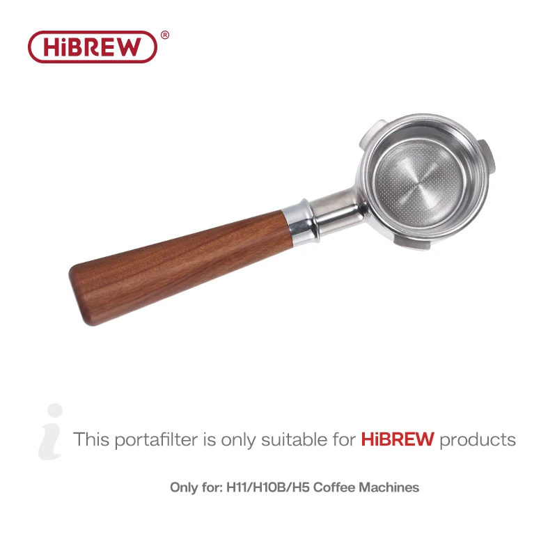 مقبض مسحوق القهوة بدون قاع ، 304 من الفولاذ المقاوم للصدأ والخشب الصلب ، 51 مللي متر
