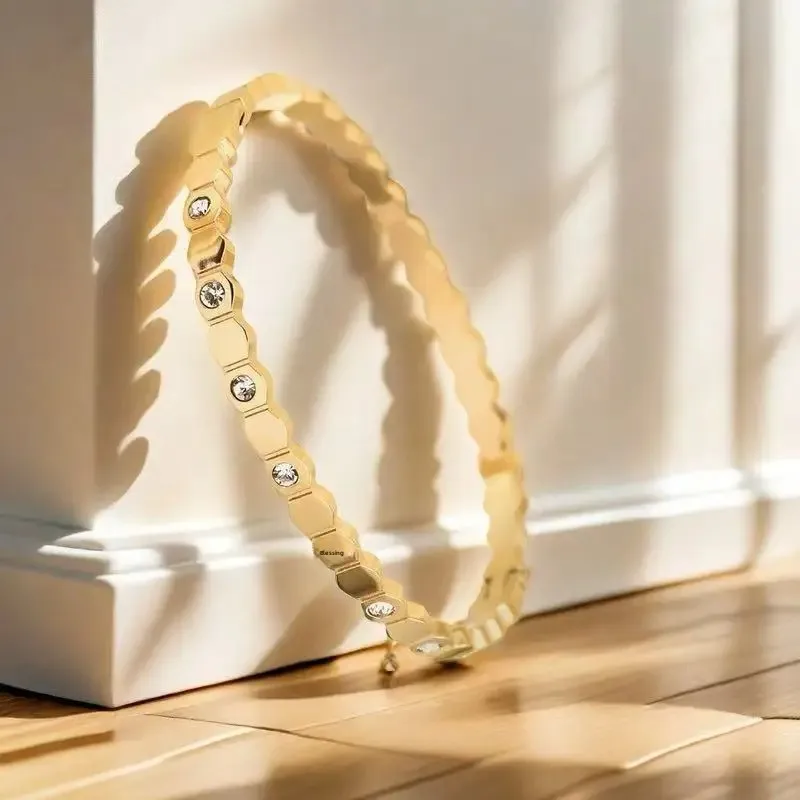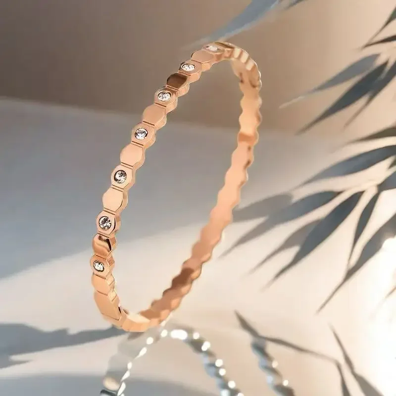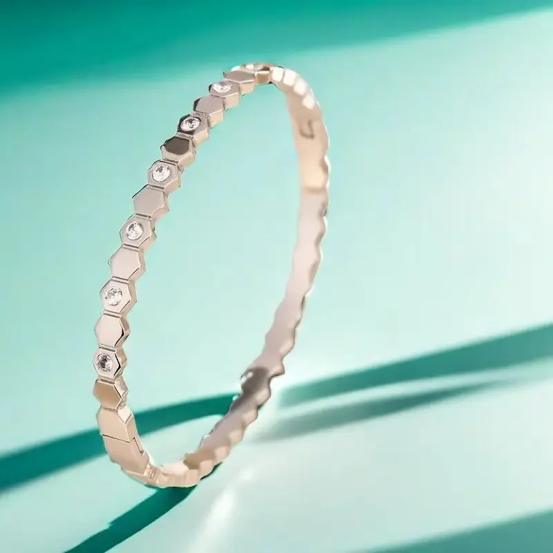 سوار من الفولاذ التيتانيوم المطلي بالذهب الوردي مع إبزيم مدمج من الماس، خاتم يد عصري للزوجين، مجوهرات عبر الحدود