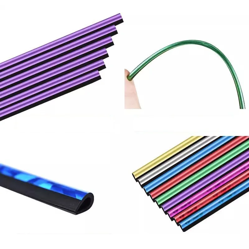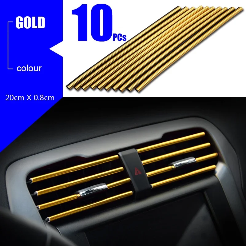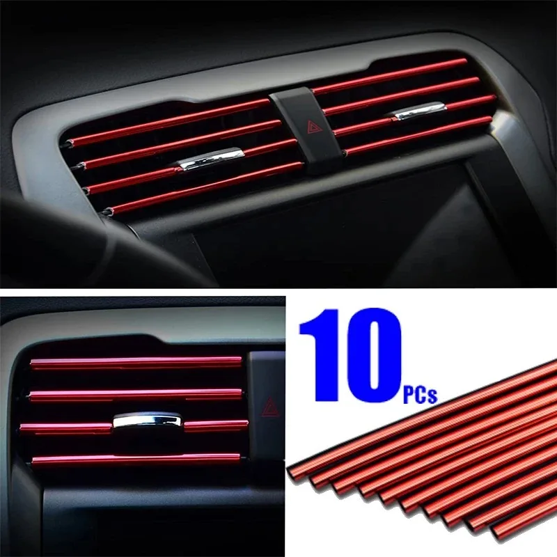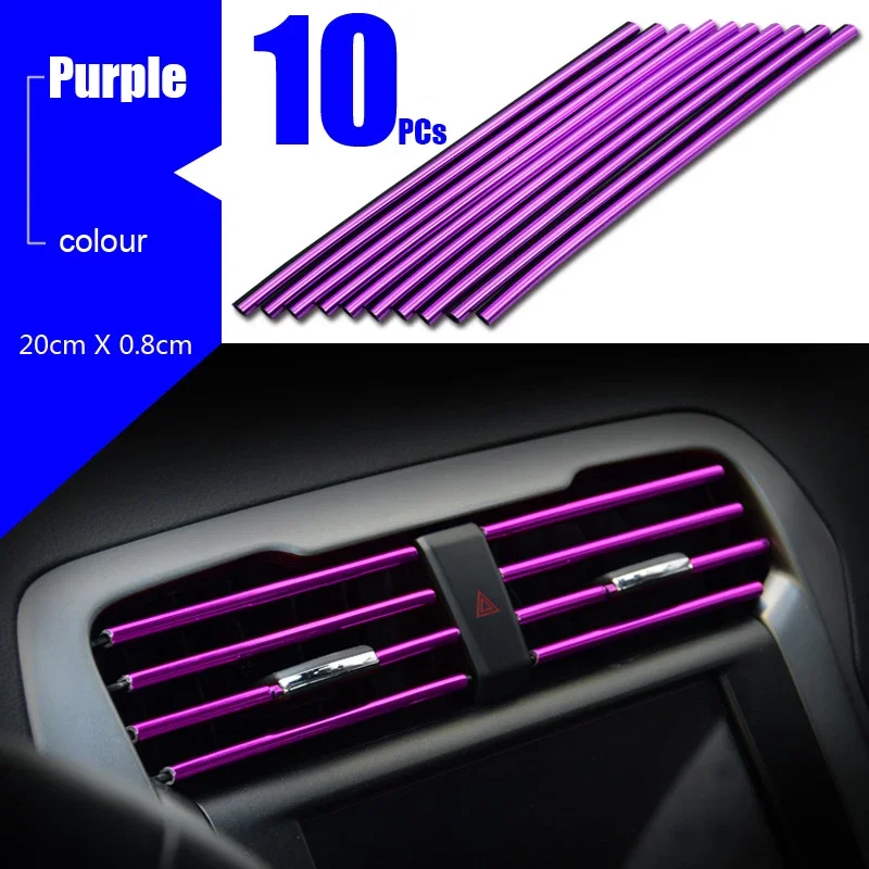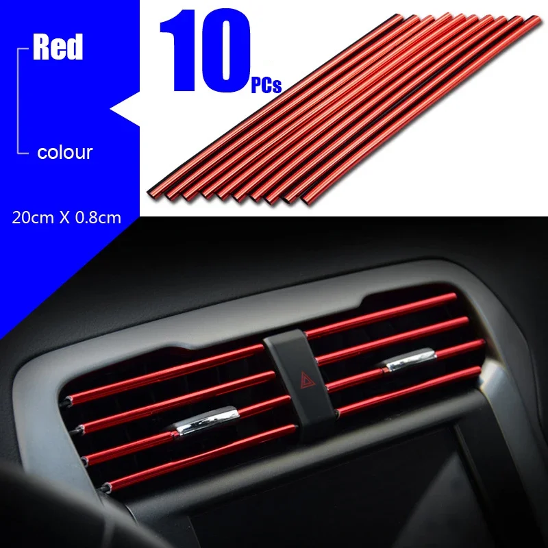 10 قطعة مكيف هواء السيارة تنفيس منفذ شرائط الكسوة U شكل الكروم بولي كلوريد الفينيل الملونة لامعة شرائط تقليم السيارة لتزيين السيارة