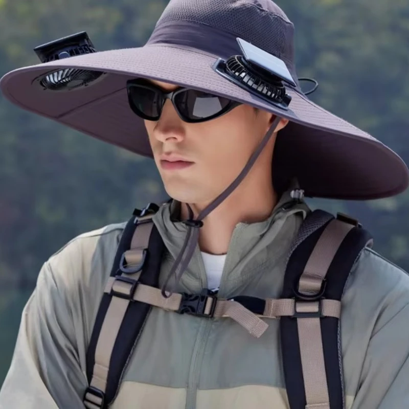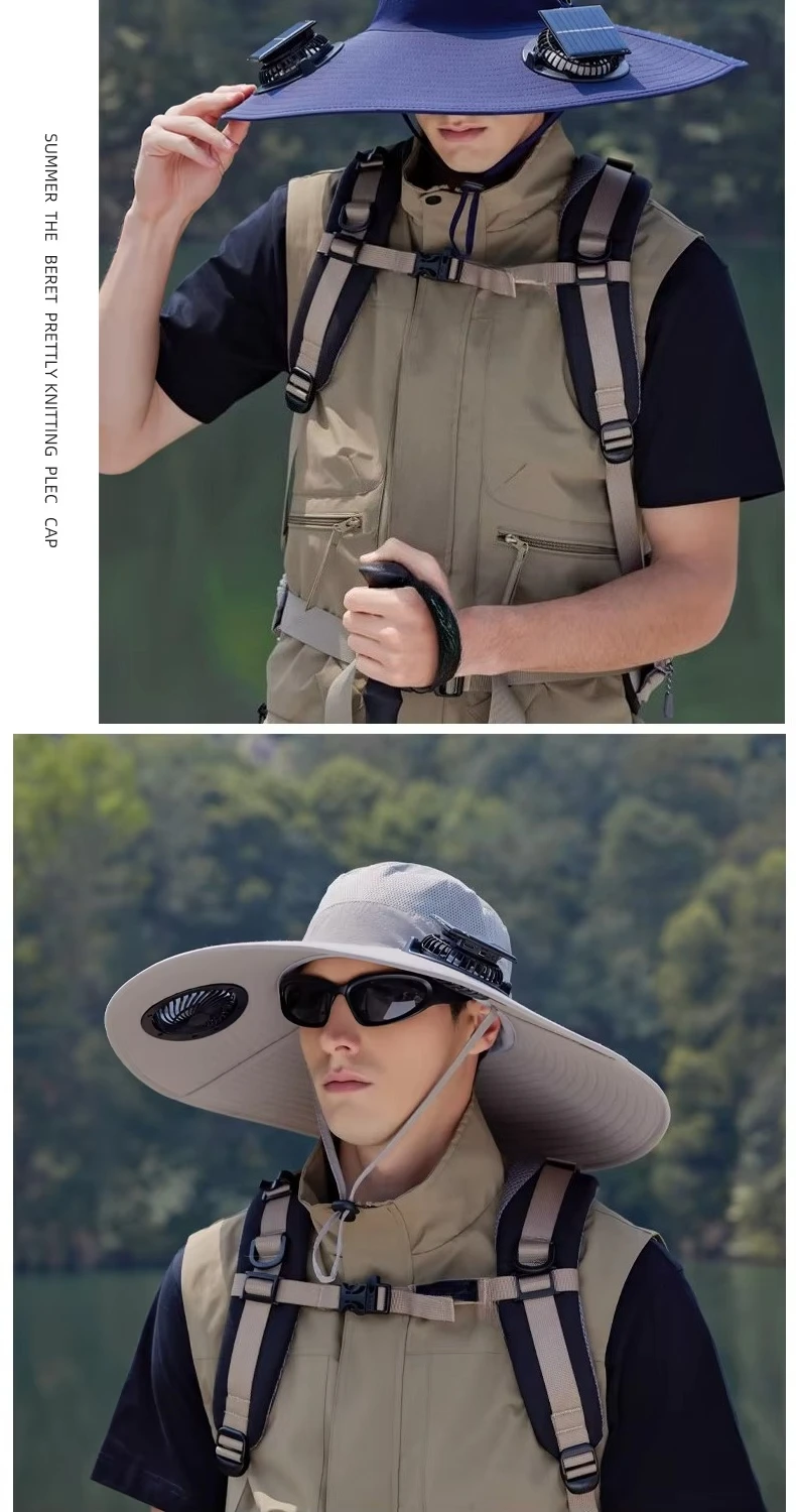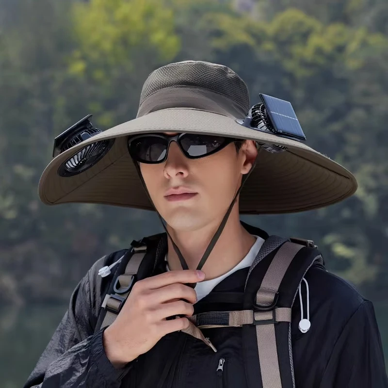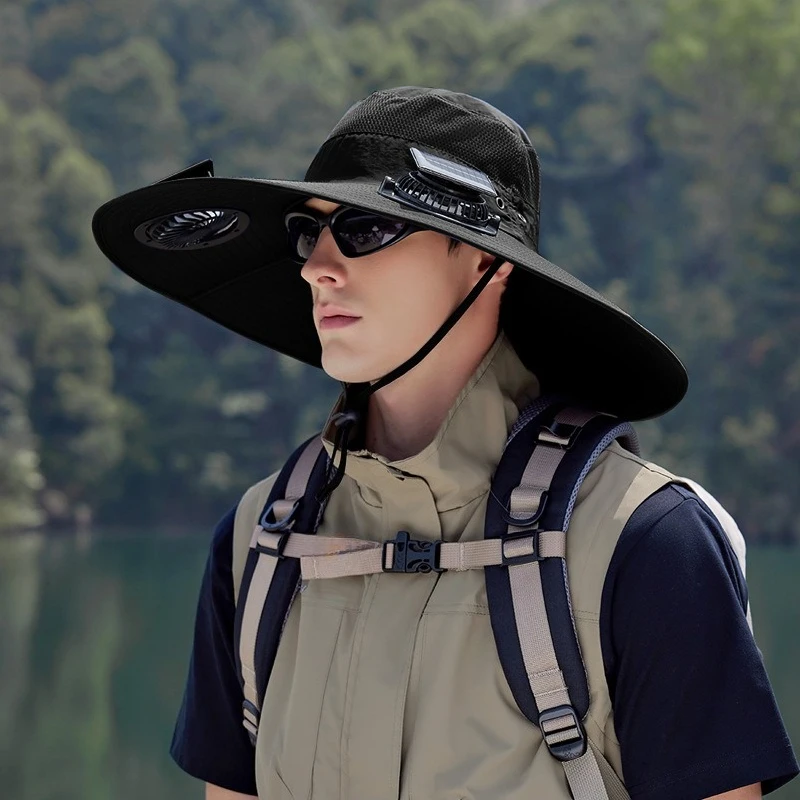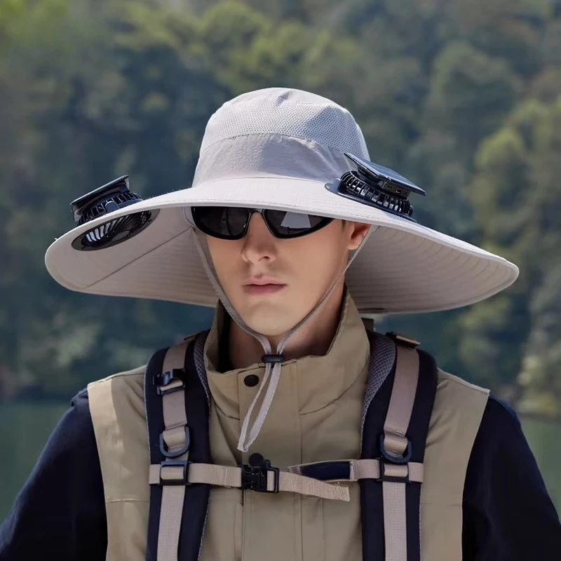 قبعات الصيد في الهواء الطلق الصيف الشمسية مروحة مزدوجة قبعة واسعة حافة التجفيف السريع تنفس مقاوم للماء قبعة صياد لتسلق الجبال