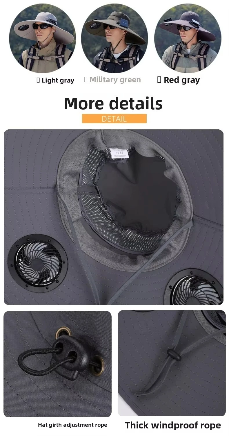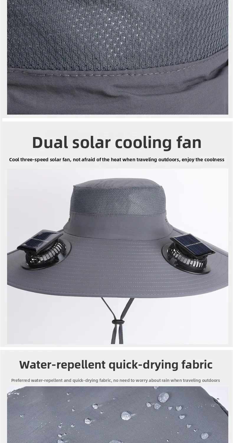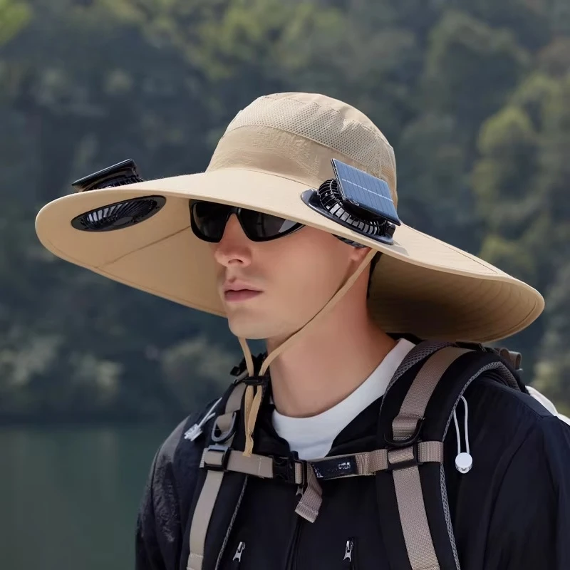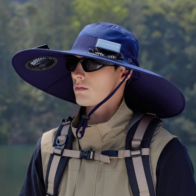 قبعات الصيد في الهواء الطلق الصيف الشمسية مروحة مزدوجة قبعة واسعة حافة التجفيف السريع تنفس مقاوم للماء قبعة صياد لتسلق الجبال