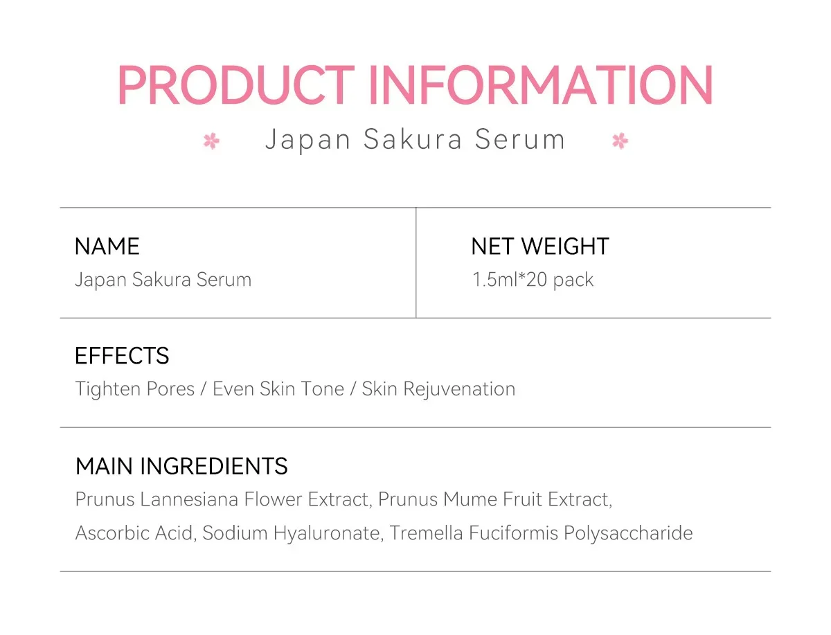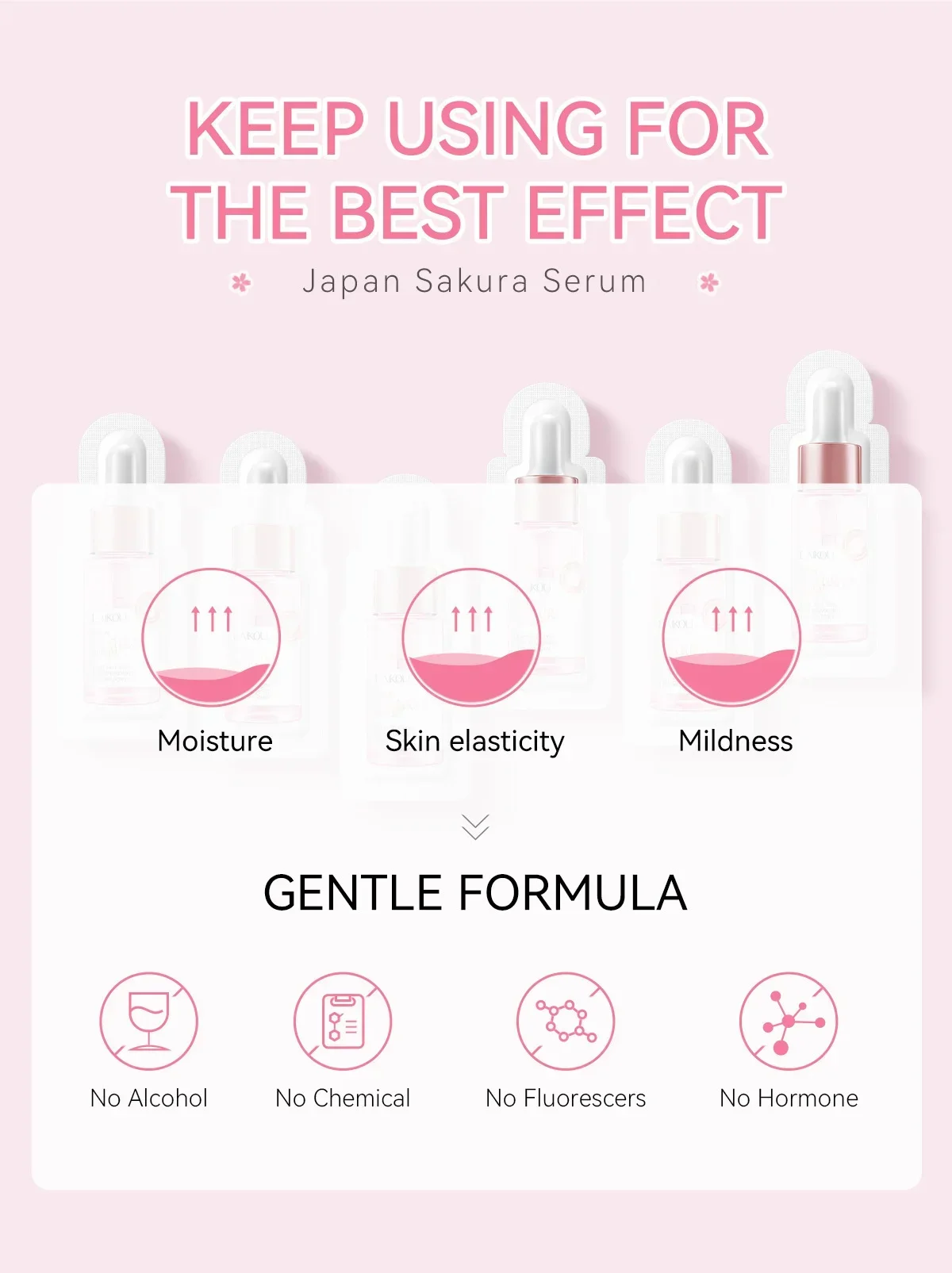 سيروم تبييض الوجه من ساكورا مضاد للشيخوخة يتلاشى الخطوط الدقيقة لشد المسام وتحسين صبغة الميلانين مرطب مملة سطع العناية بالبشرة