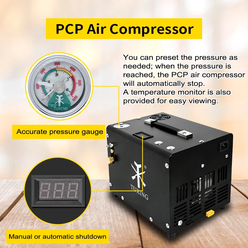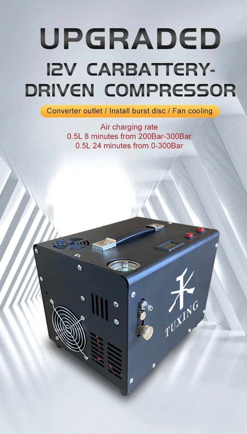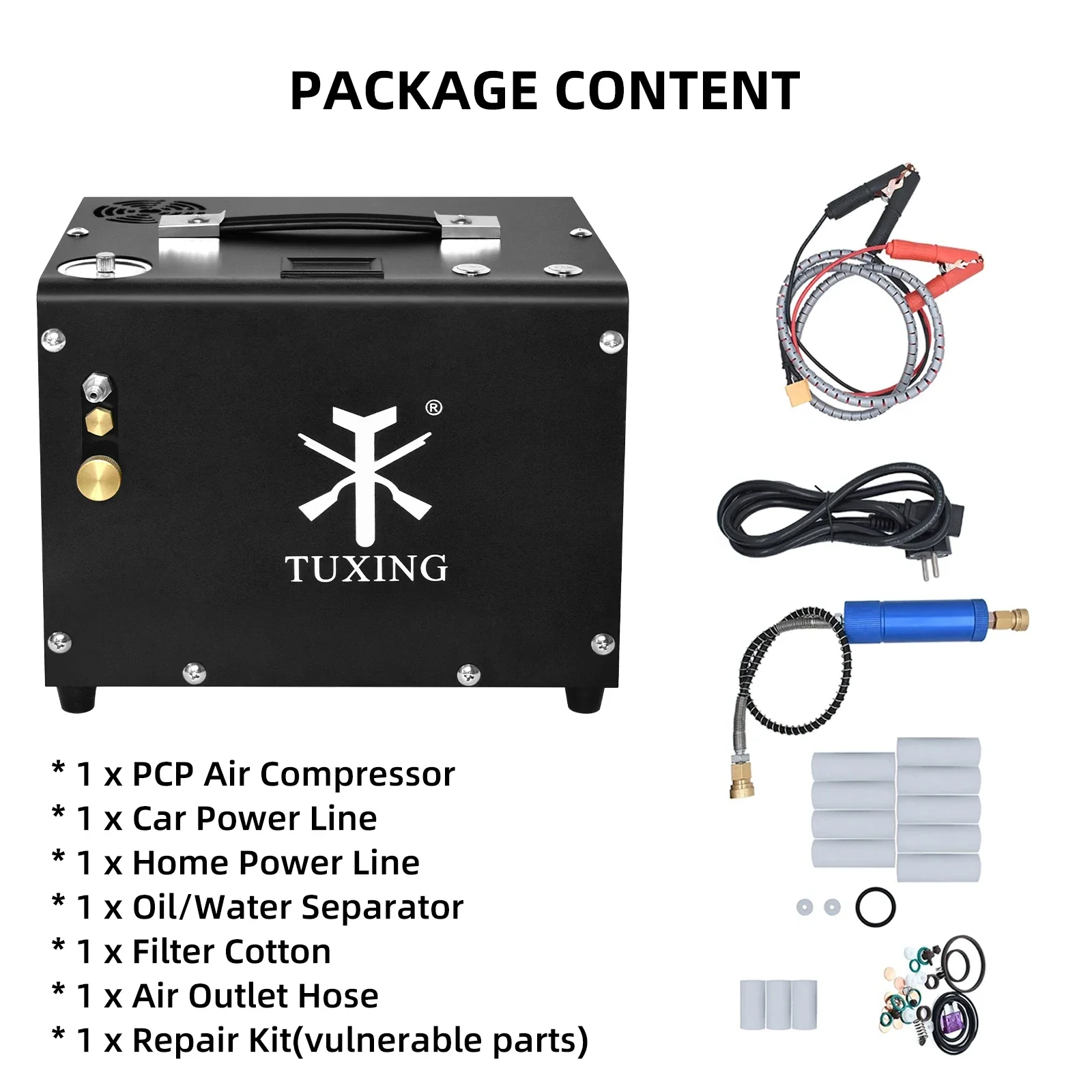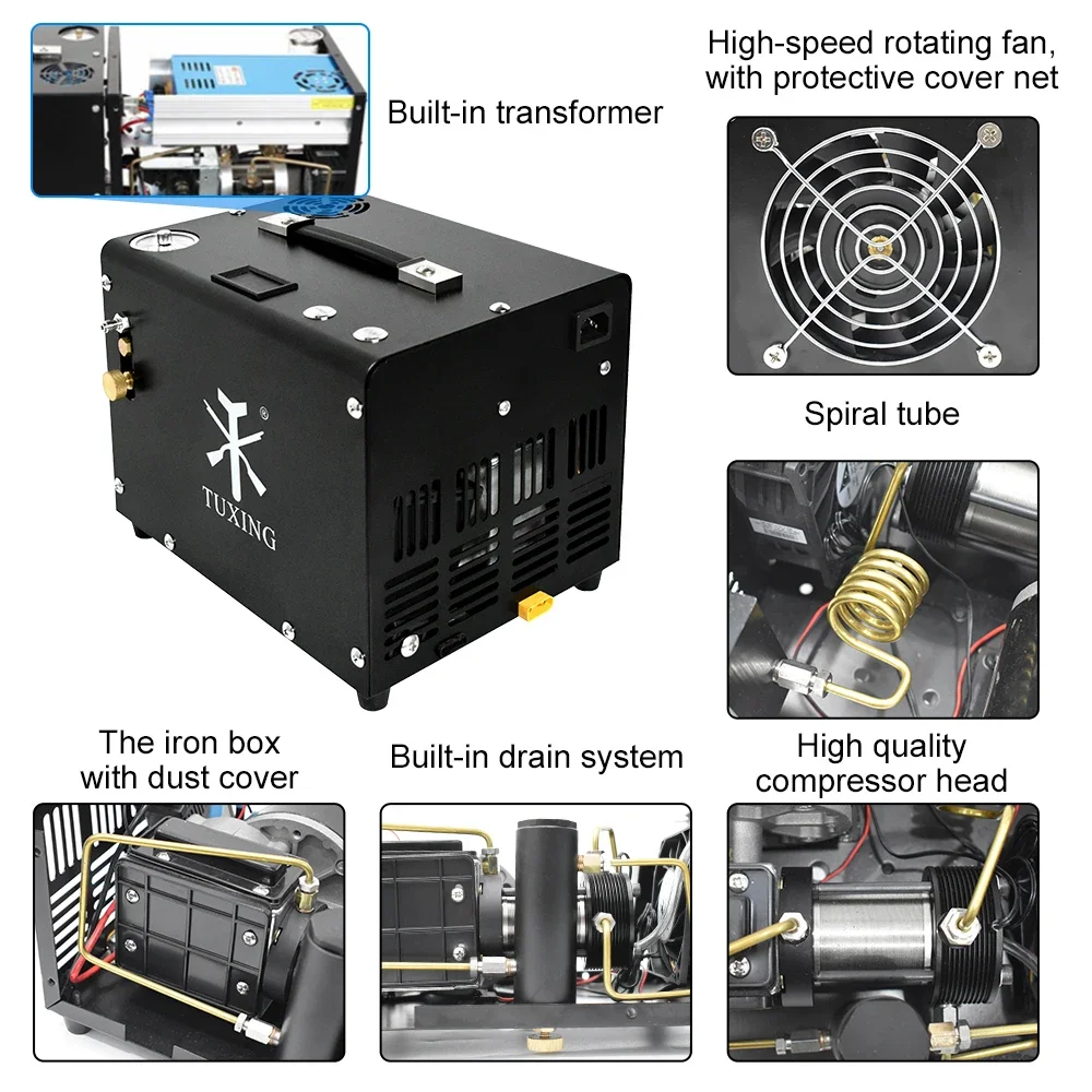 TUXING 4500Psi 300Bar PCP ضاغط الهواء ارتفاع ضغط الكهربائية المدمج في محول الطاقة ضاغط لخزان الغوص PCP TXET062