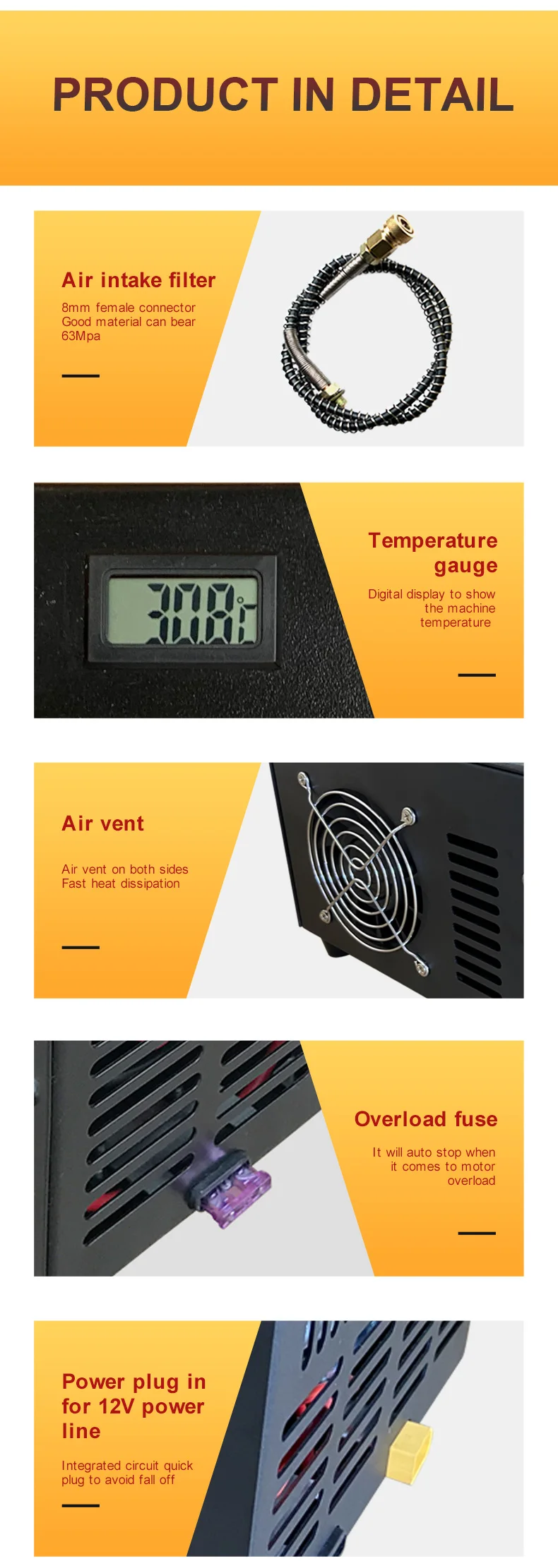 Power rating : 300WCooling system : fan coolingNoise : 72DBSize : 330mm×270mm×340mmPower voltage : 110V / 220VCompression Stage : Two stageLubric...