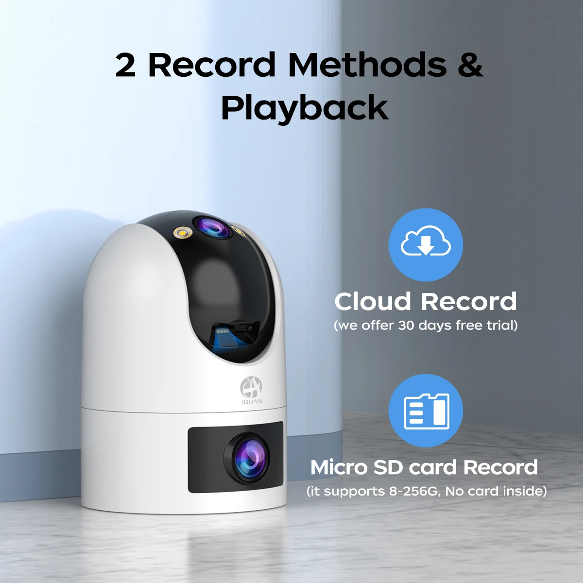 • TF storage and cloud storage.Free 30-day cloud storage and Max 128G SD card Record.