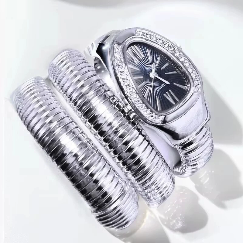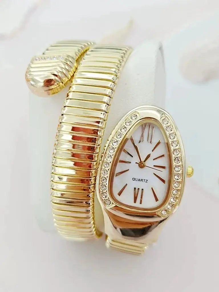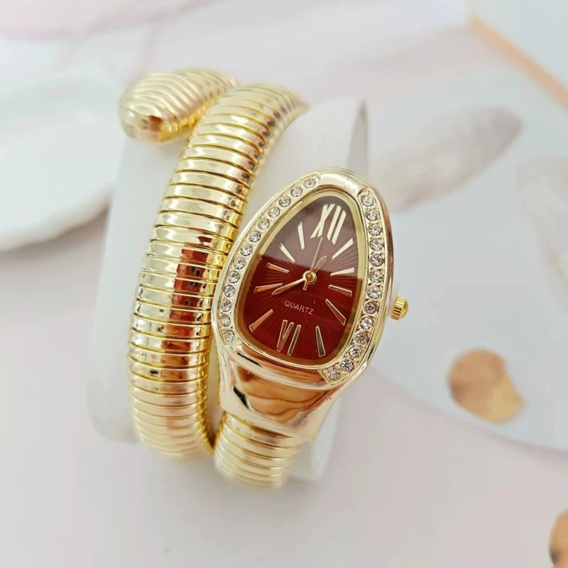 السيدات الفاخرة أزياء كوارتز ساعة Snakehead حجر الراين الفاخرة النساء ووتش جودة بسيطة مطلية بالذهب النساء الساعات على مدار الساعة