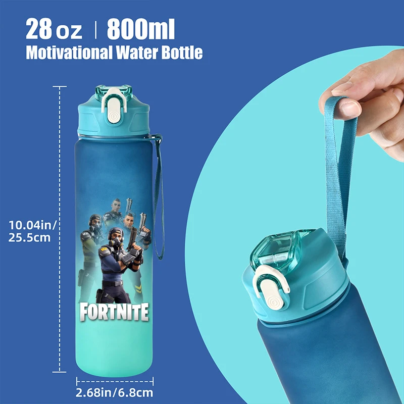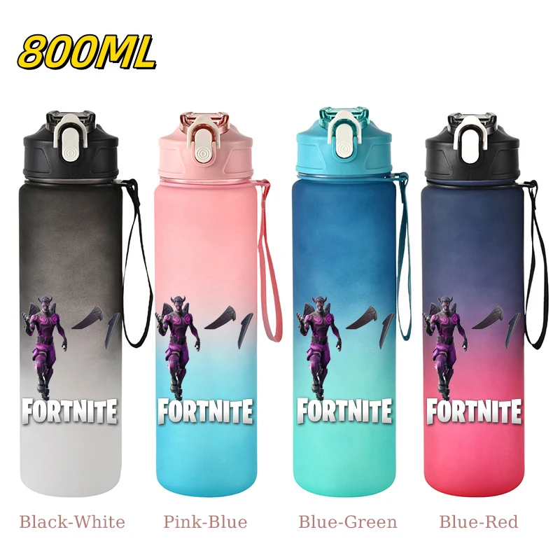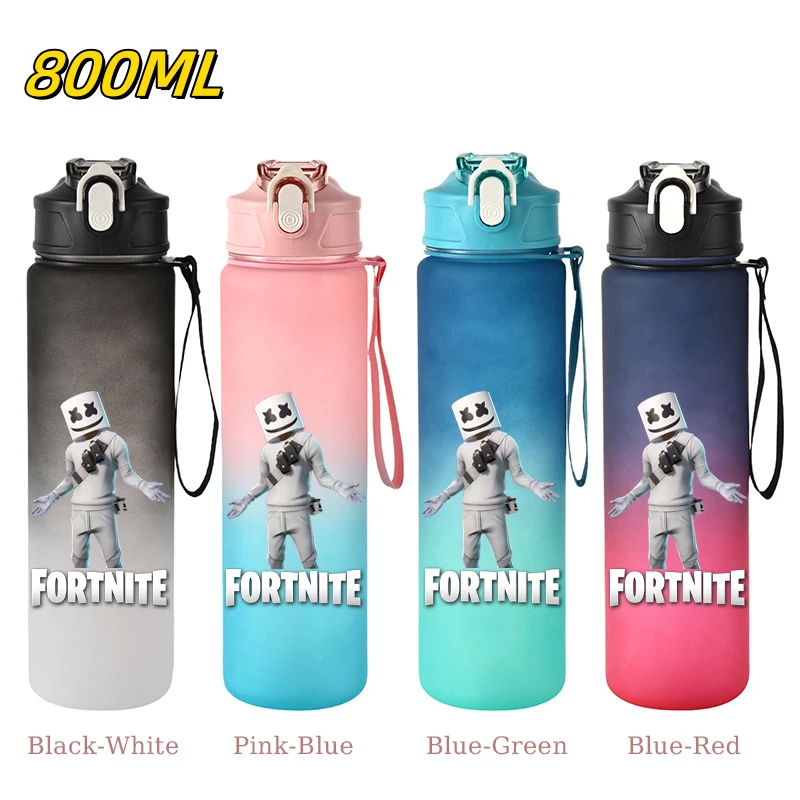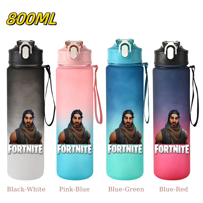 Fortnite800ML زجاجة ماء مع القش مانعة للتسرب كوب بلاستك ملون المحمولة اللياقة البدنية شرب زجاجة غلاية أباريق في الهواء الطلق الهدايا