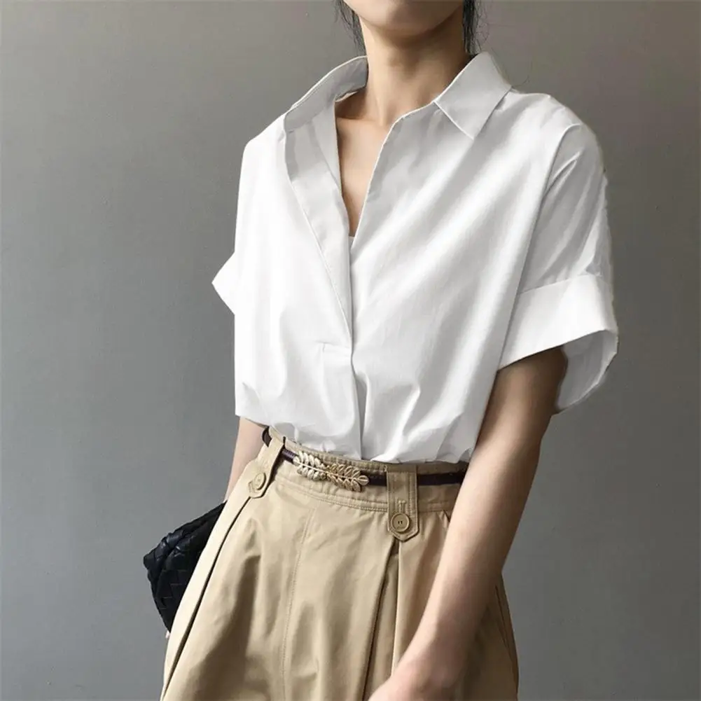 المرأة الصيف قميص التلبيب قصيرة الأكمام بلون البلوز بلايز فضفاضة تناسب رقيقة مكتب قميص سيدة ملابس العمل