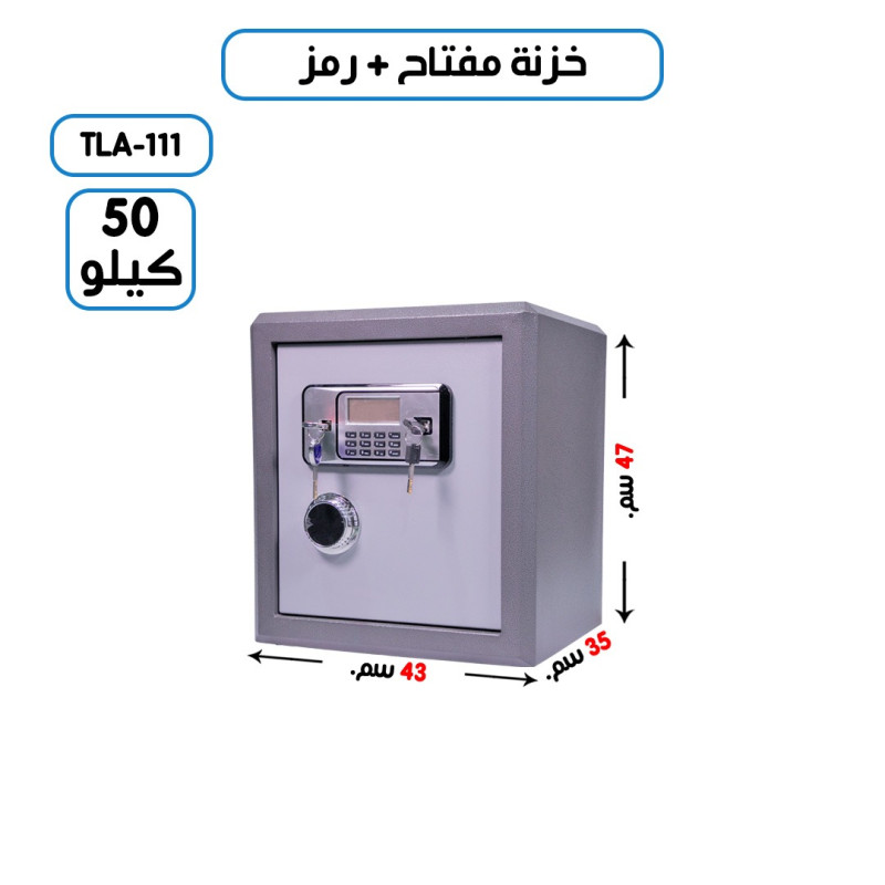 خزنة فولاذ أمنية مقاومة للحرائق مفتاح + رمز رمادي وزن 50 كيلو