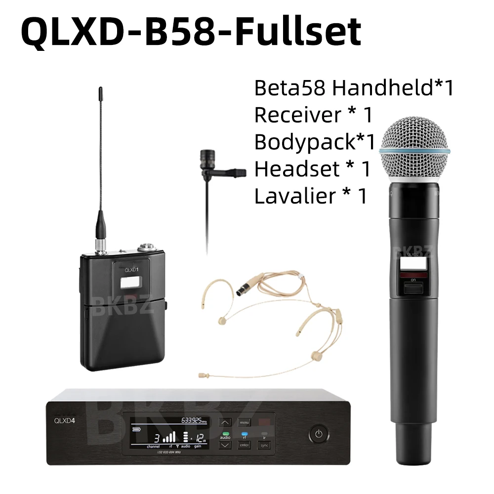 QLXD4-B58-Fullset 500MHz/600MHz ميكروفون لاسلكي احترافي UHF يده سماعة ميكروفون مرحلة الأداء حفلة كاريوكي