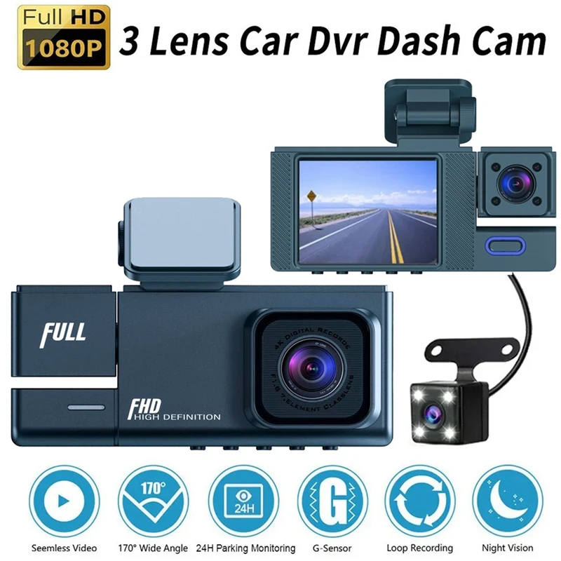 1 Set x مسجل قيادة ثلاثي العدسات (أمامي + داخلي + خلفي).