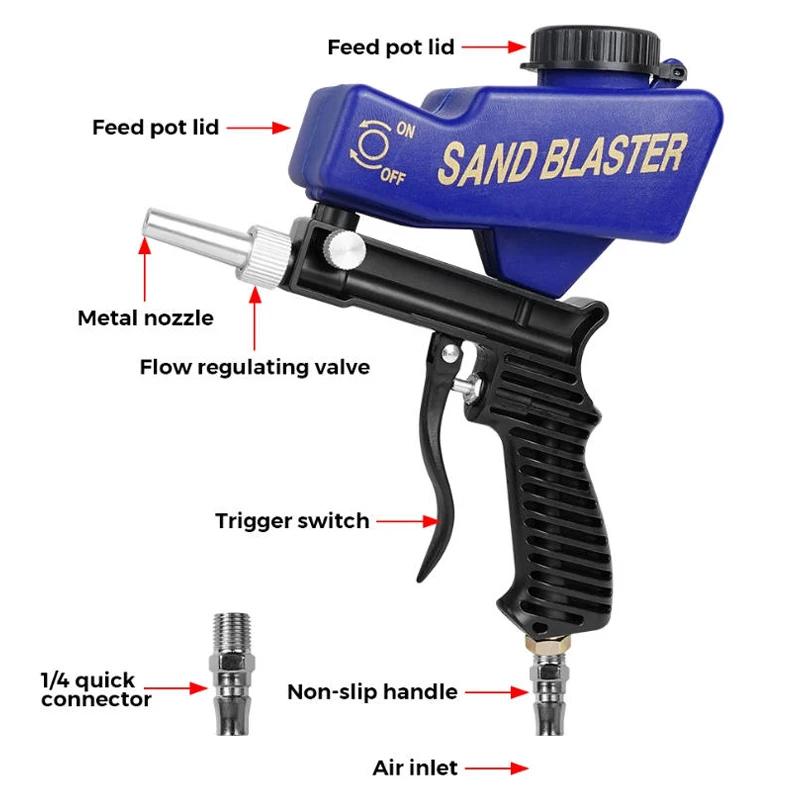 مسدس ناسف الرمل الهوائي يزيل الطلاء والصدأ والبقع والأوساخ على الأسطح الجاذبية تغذية 90 رطل لكل بوصة مربعة ناسف الرمل المحمول