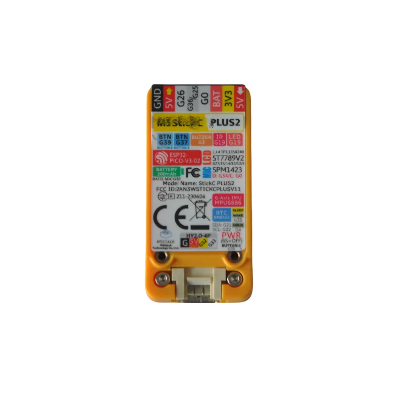 is an iterative version of M5StickC PLUS, featuring the ESP32-PICO-V3-02 chip as the main controller with built-in WiFi functionality. The compact device integrates a wealth of hardware resources within its small form factor, including infrared, RTC, microphone, LED, IMU, buttons, buzzer, and more. It boasts a 1.14-inch TFT screen with a resolution of 135*240, driven by the ST7789V2. The battery capacity has been increased to 200mAh, and the interface also supports HAT and Unit series products. This compact and versatile development tool is designed to spark limitless creative possibilities.facilitates the rapid prototyping of IoT products, streamlining the entire development process. Even beginners in programming can easily build interesting applications and apply them to real-life scenarios using M5StickC PLUS2.