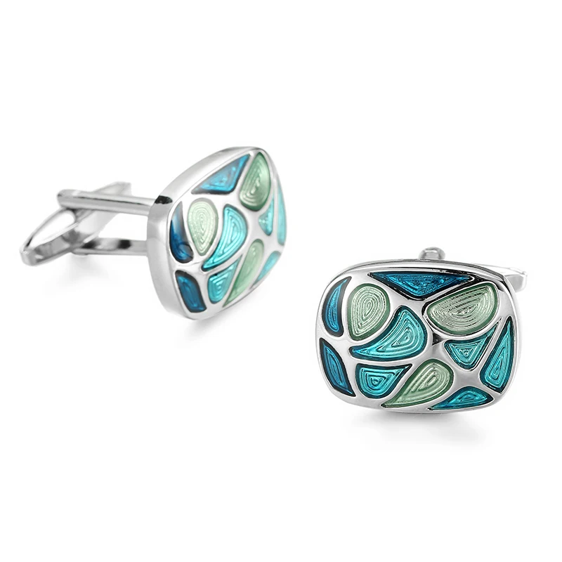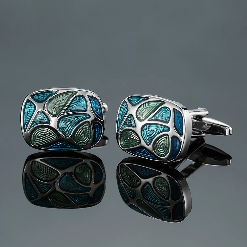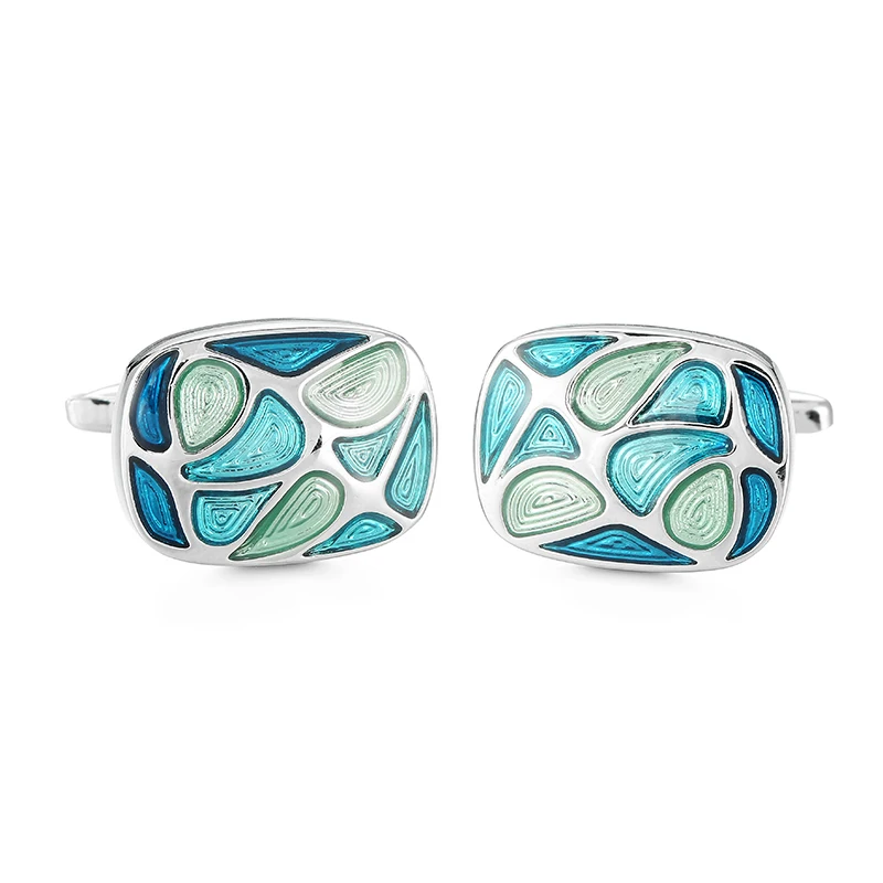 أزرار أكمام قميص فرنسية للرجال ، مادة نحاسية ، مينا زرقاء بيضاوية ، علامة تجارية للأزياء ، إكسسوارات ملابس ، بيع بالجملة