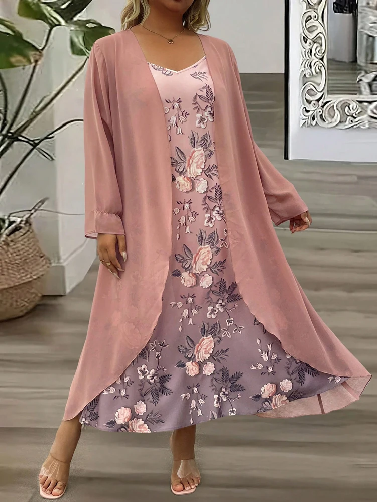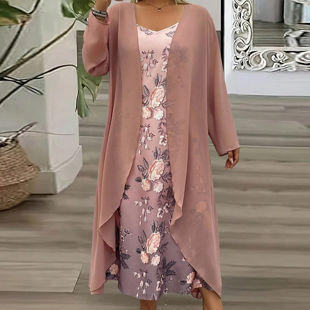 بالإضافة إلى حجم ربيع الخريف فستان شيفون دانتيل أنيق مكون من قطعتين مجموعة ملابس عصرية وأنيقة للنساء