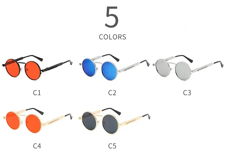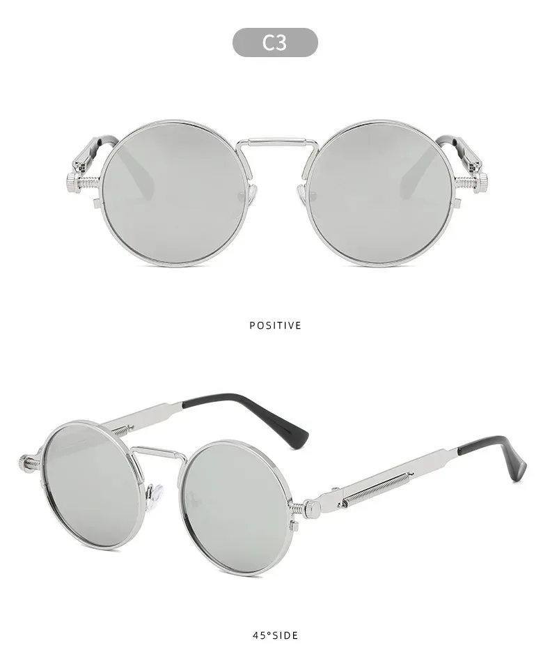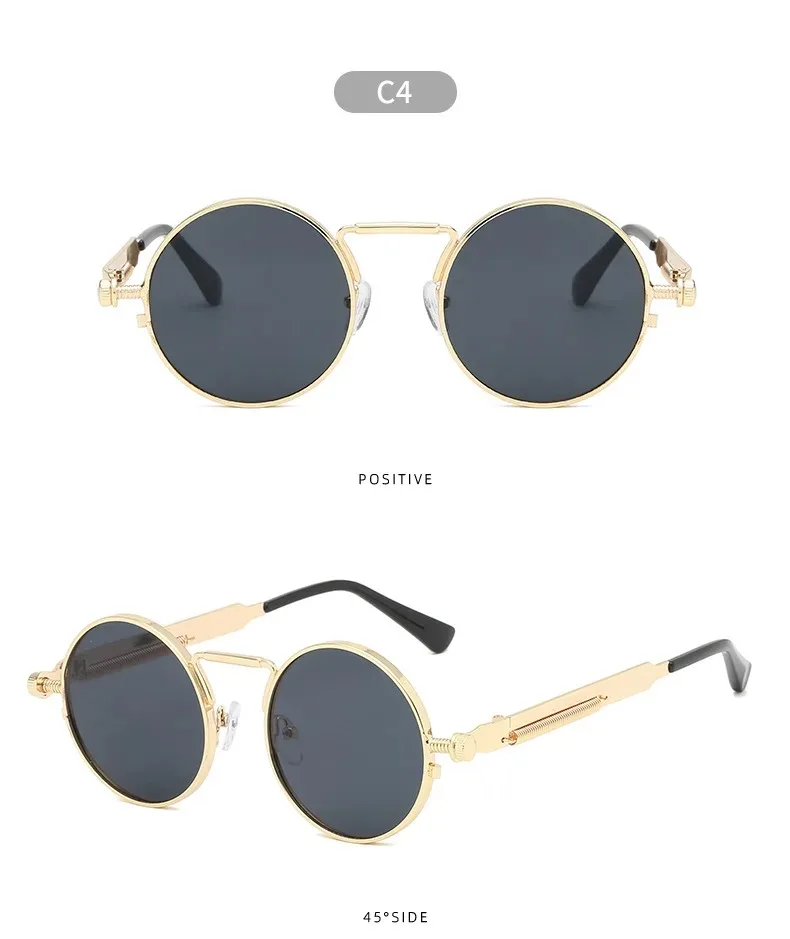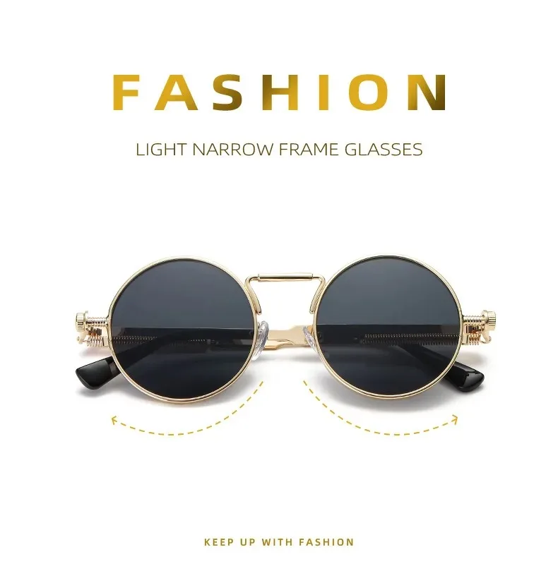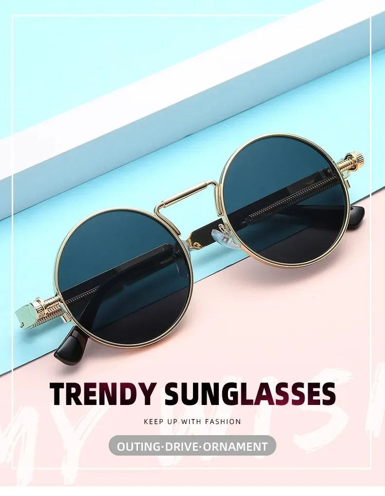 Round Frame Steampunk Spring Leg Sunglasses For Men Women Driving Metal Sun Glasses Fashion Vintage Classic Male Ladies Eyewear