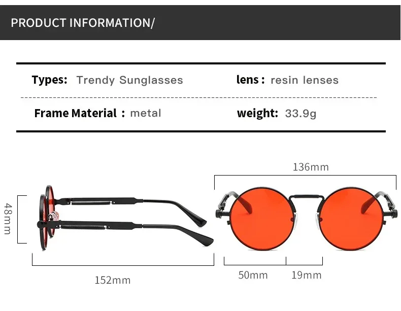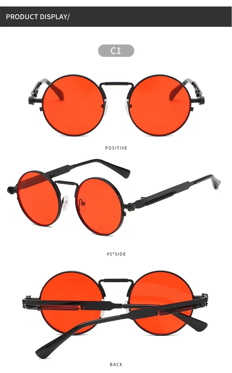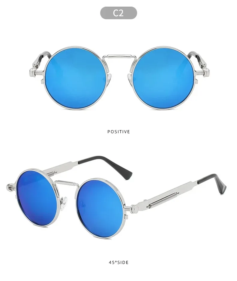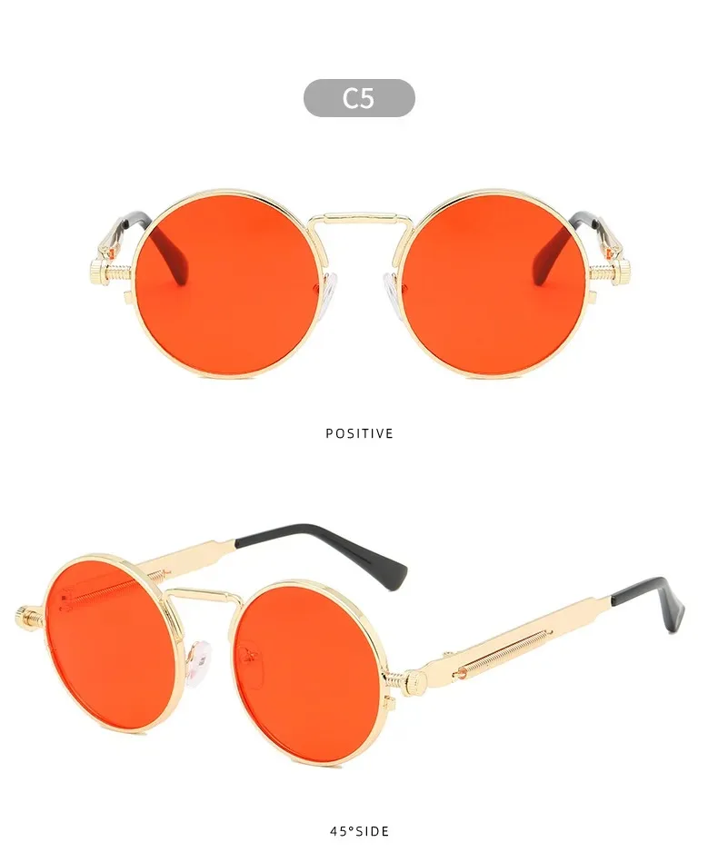 Round Frame Steampunk Spring Leg Sunglasses For Men Women Driving Metal Sun Glasses Fashion Vintage Classic Male Ladies Eyewear