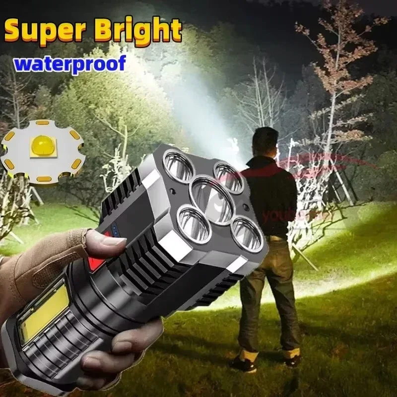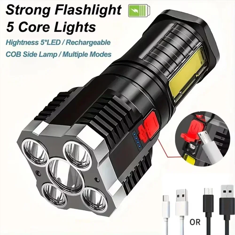 Using high-quality synthetic plastic, durable, hard, not easy to damage, and light weight, the front 5 LED lamp beads, the brightness is extremely high, easy to illuminate about 100 meters. Equipped with a COB side light, which can be used as a flood light