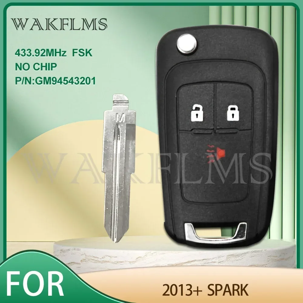For Chevrolet Spark 2013- Flip Car Key 433MHz No CHIP 8E Chip P/N:GM94543201
