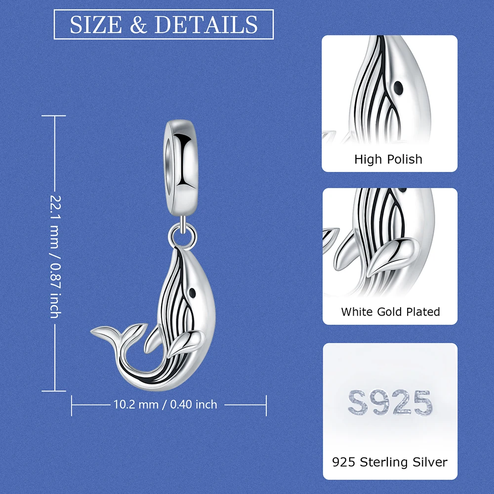 925 فضة لطيف الحيوان الحوت الخرزة سحر صالح الأوروبي سوار مجوهرات عيد ميلاد الصيف هدايا للنساء الفتيات صديقة