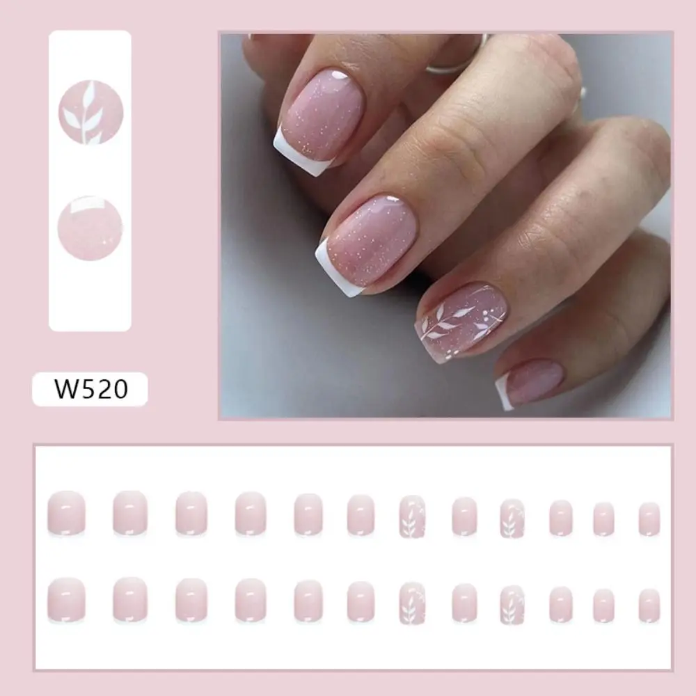 24 قطعة مانيكير DIY اضغط على الأظافر حافة بيضاء أظافر وهمية بيضاوية طويلة فرنسية