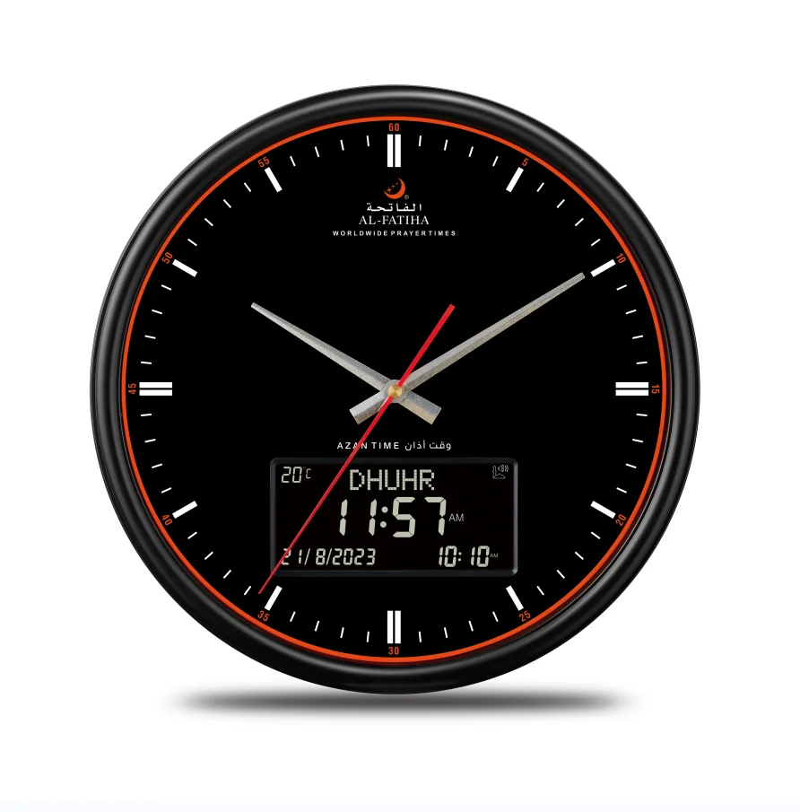 AL-FATIHA Athan ساعة إسلامية رقمية تناظرية مع تقويم هجري وقت الصلاة أذان إنذار المسجد ساعات الحائط