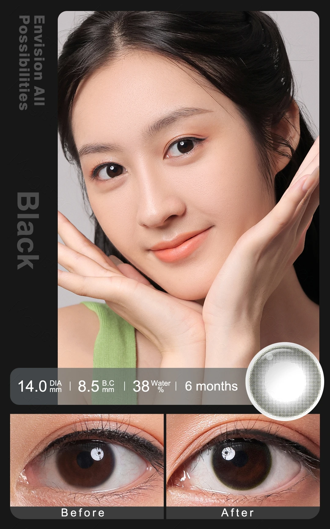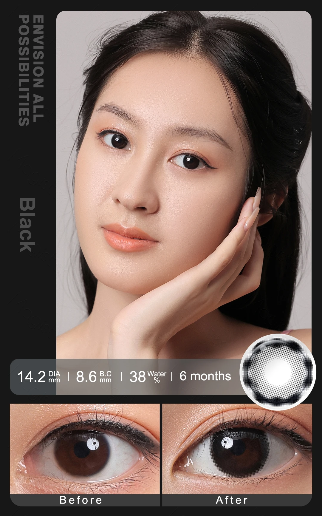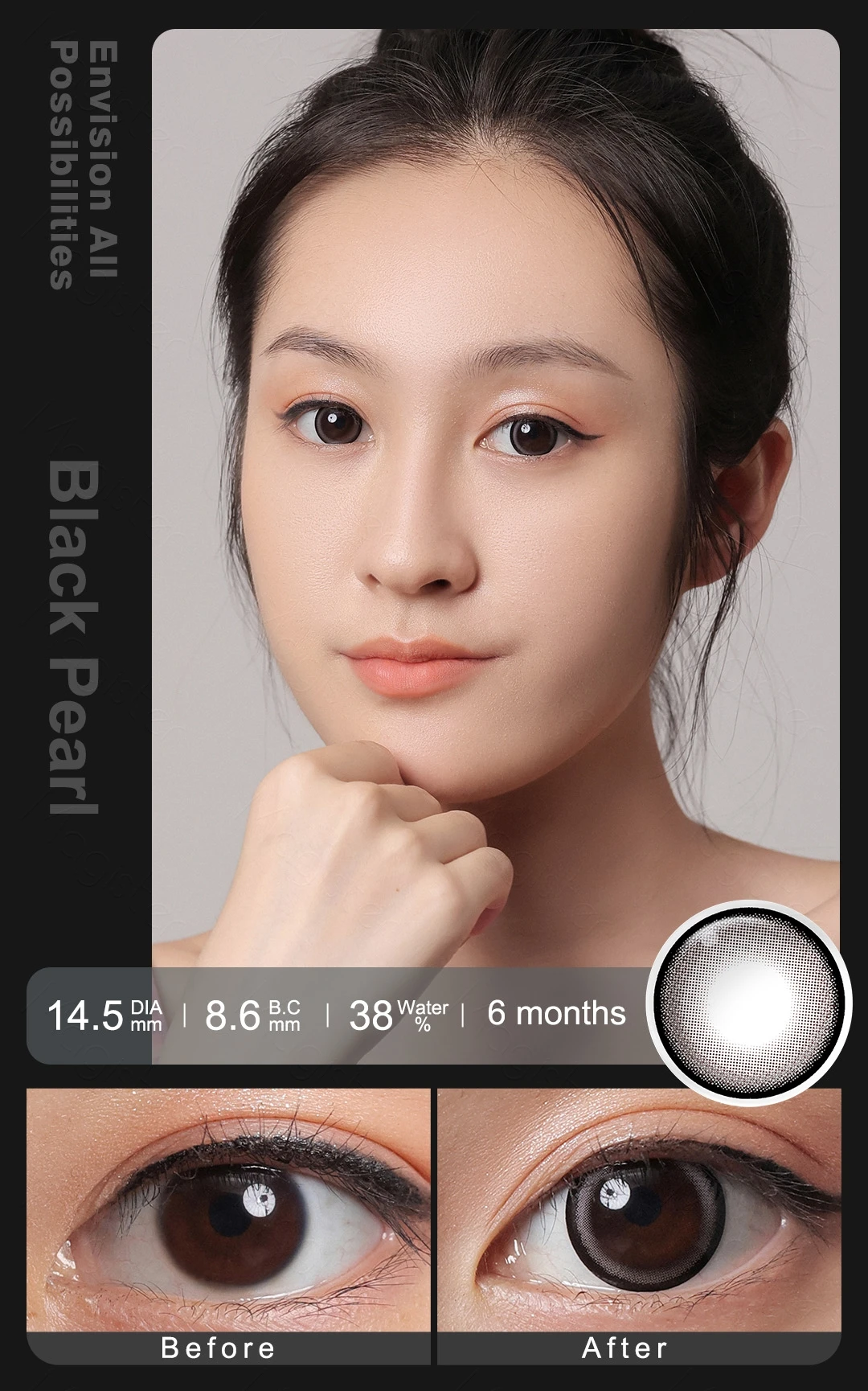 1 Pair Contact Lenses For Eyes Beauty Pupils Big Black Lenses Comestic Eye Color Lens 16mm Color Contact Lenses