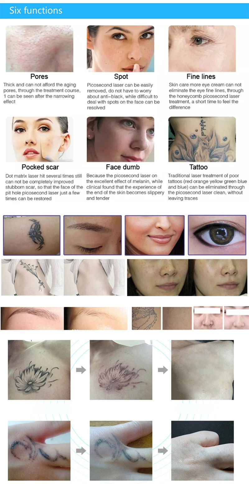 1) إزالة الوشم، خط الحاجب، خط الشفاه؛ إزالة الأسود والأحمر والأزرق جميع أنواع الصبغات الملونة