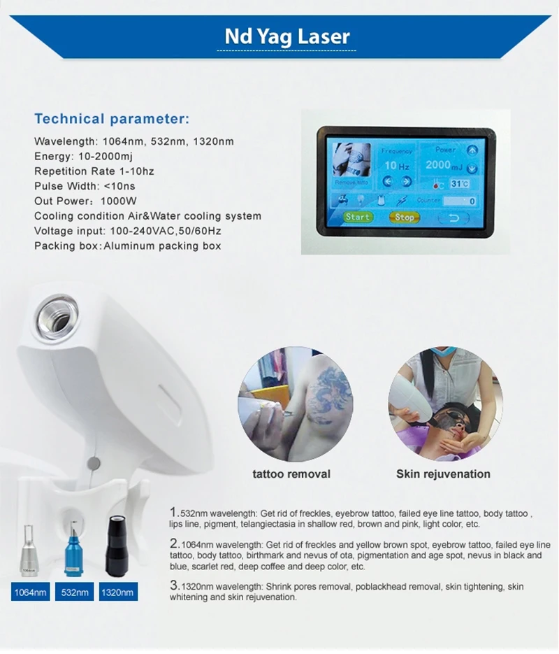 يمكن امتصاص طاقة ليزر Q-switched ND:YAG بواسطة الميلانين الأزرق والأسود.