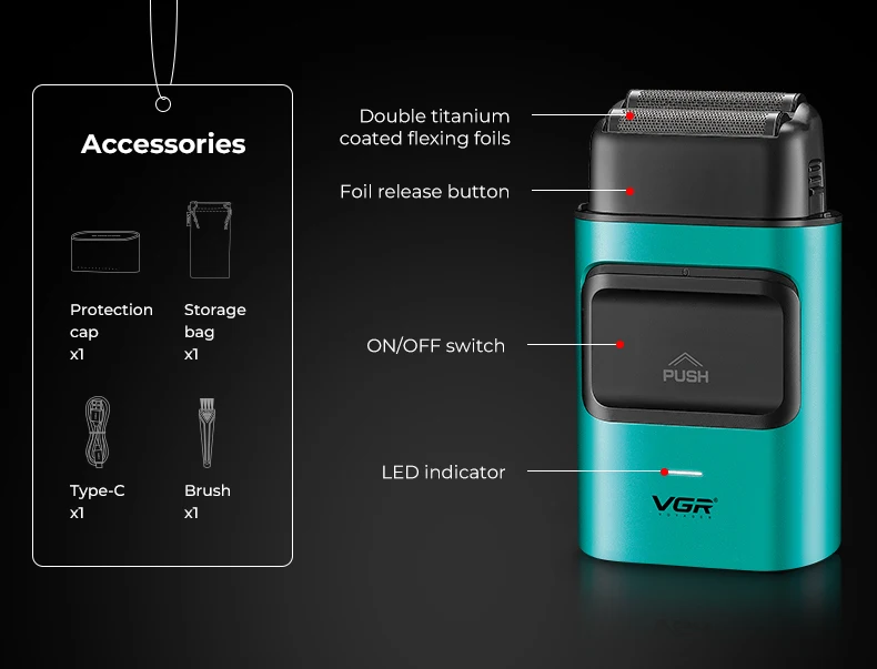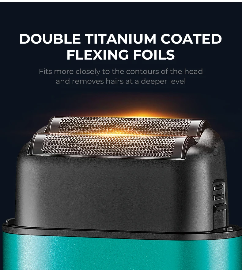 ★ Dual-Titanium Coated Flex Foil: Ultra-thin, flexible blades for a smooth and skin-friendly shave.