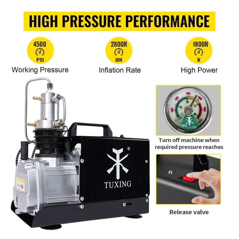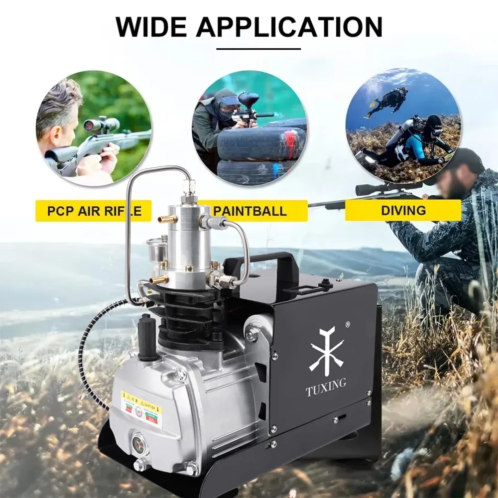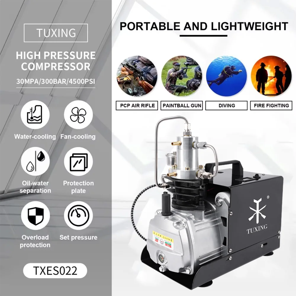 TUXING TXES022 4500Psi PCP ضاغط الهواء 300Bar السيارات وقف الكهربائية ضاغط الهواء الضغط العالي لخزان نافخة بندقية الغوص