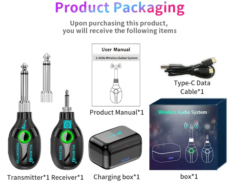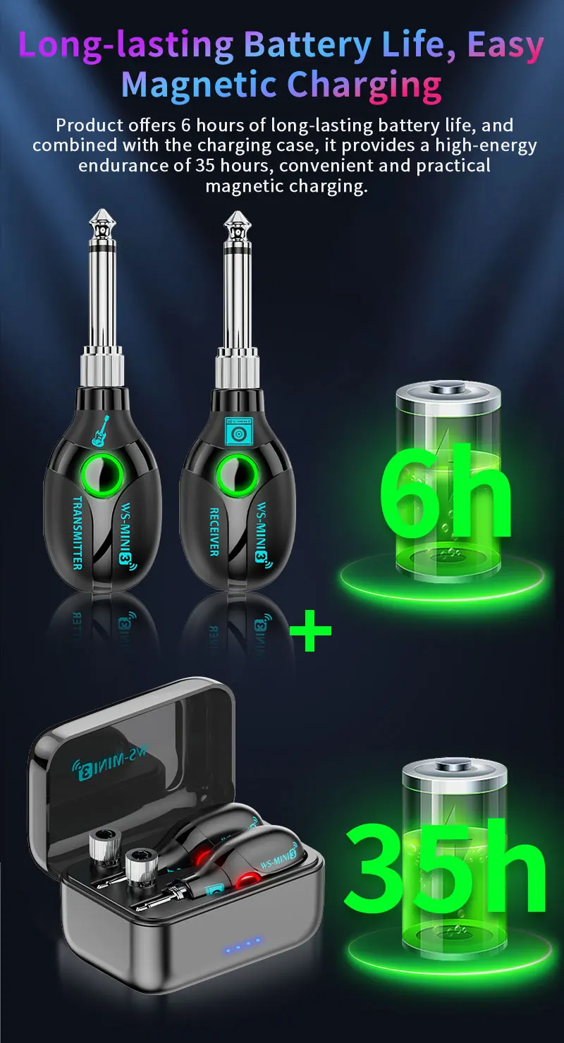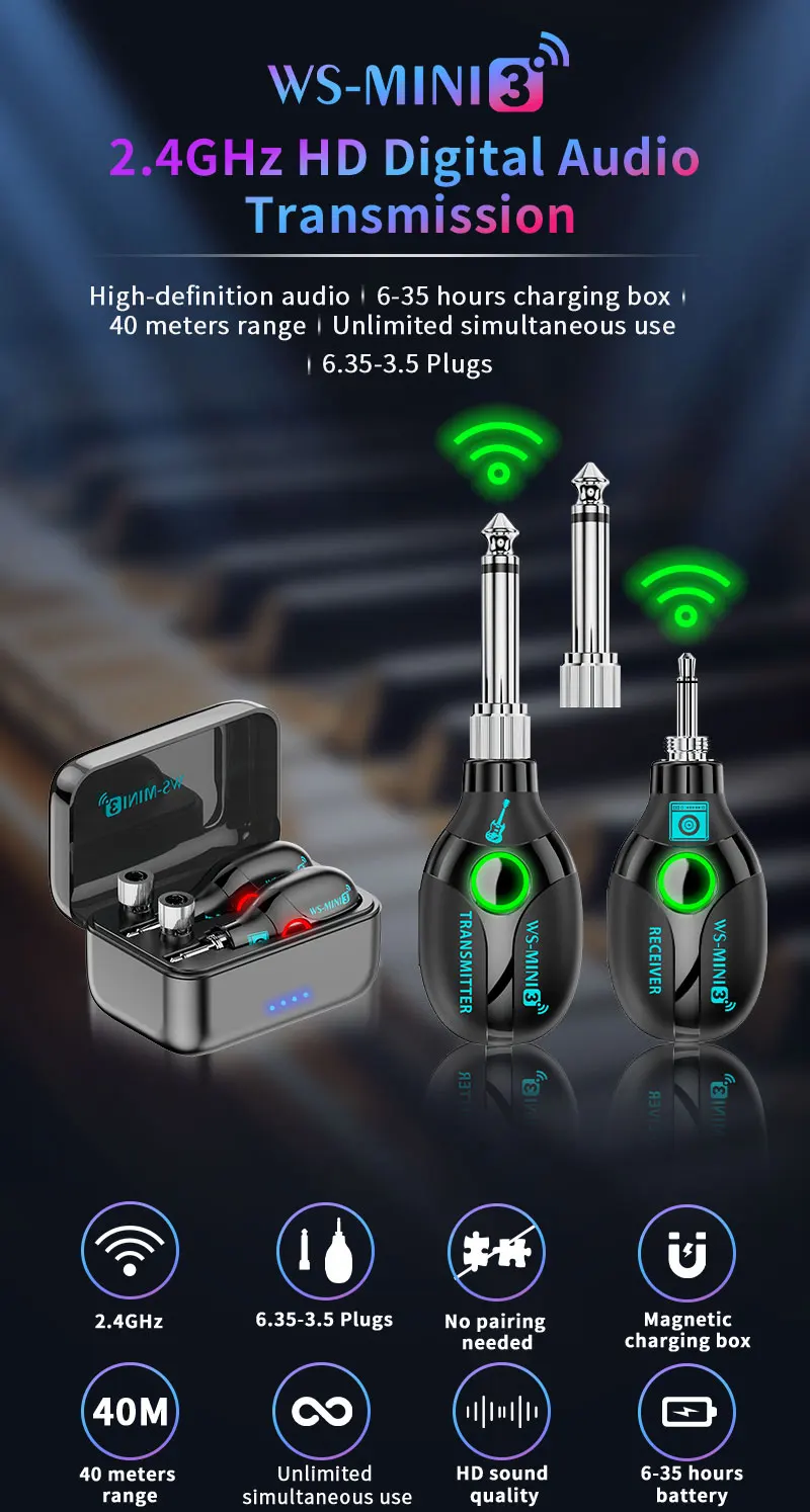 جهاز إرسال واستقبال جيتار صغير لاسلكي WS-MINI3 مع علبة شحن - مزود طاقة بدواسة تأثيرات محمولة