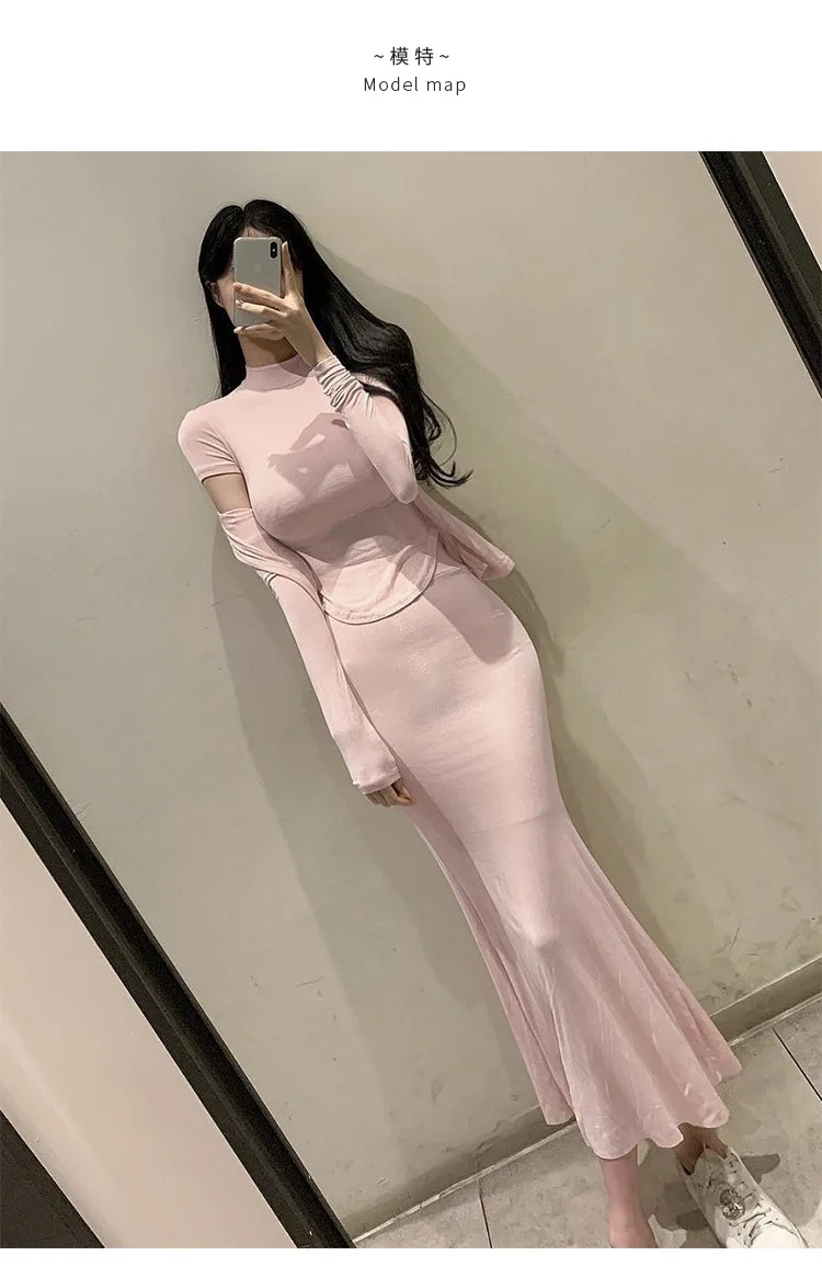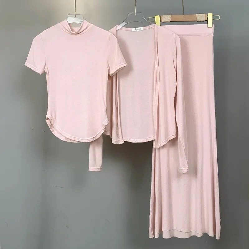 WOMENGAGA-طقم تي شيرت وتنورات بأكمام قصيرة للنساء ، نحيف ، موضة مثيرة ، نصف رقبة عالية ، وردي ، كوريا ، 70 بي