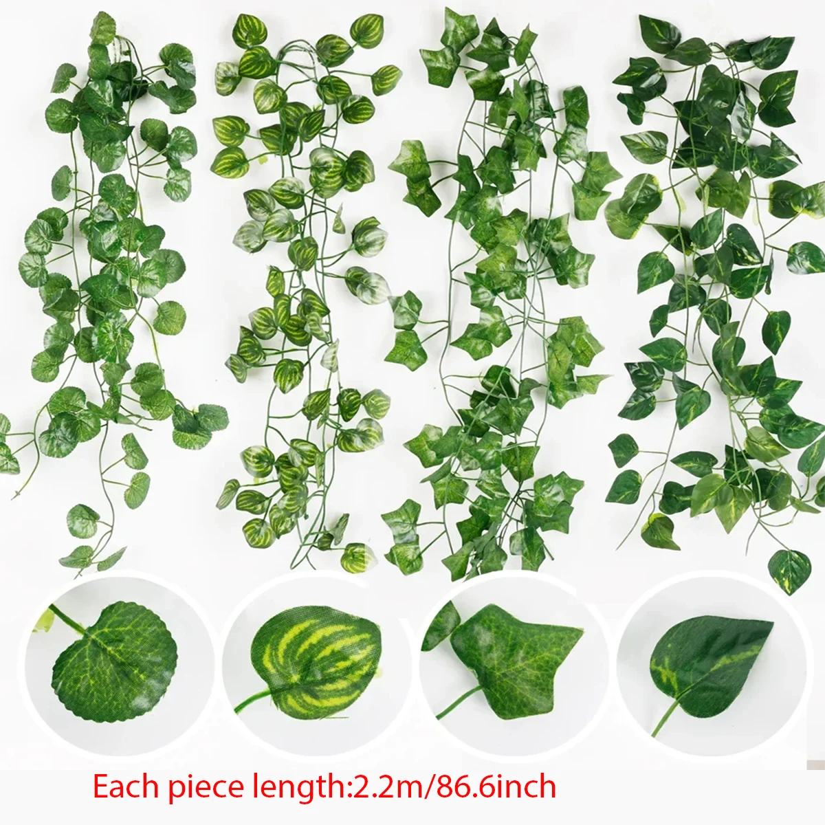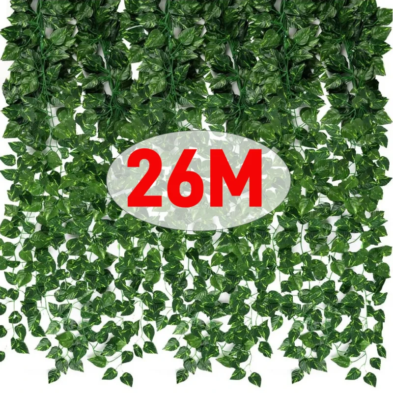 26/4 متر نبات اصطناعي أخضر أوراق اللبلاب جارلاند معلق فاينز في الهواء الطلق الخضرة جدار ديكور DIY بها بنفسك أوراق إكليل وهمية ديكور المنزل الطرفالأوصا...