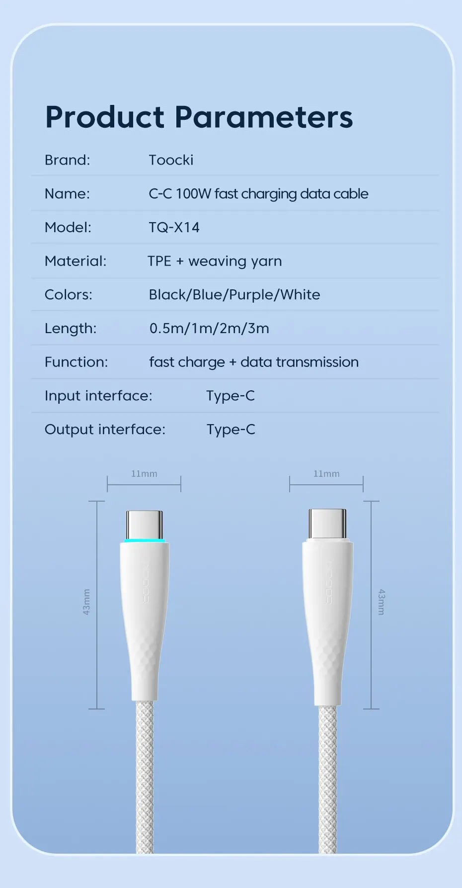 حزمة توكي 2 PD 60W 1m و 2m USB C لشحن سريع من النوع C لماك بوك وهواوي شاومي بوكو سامسونج