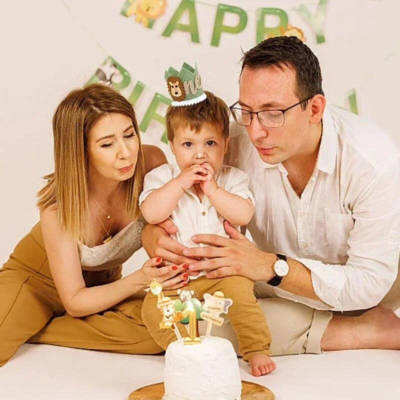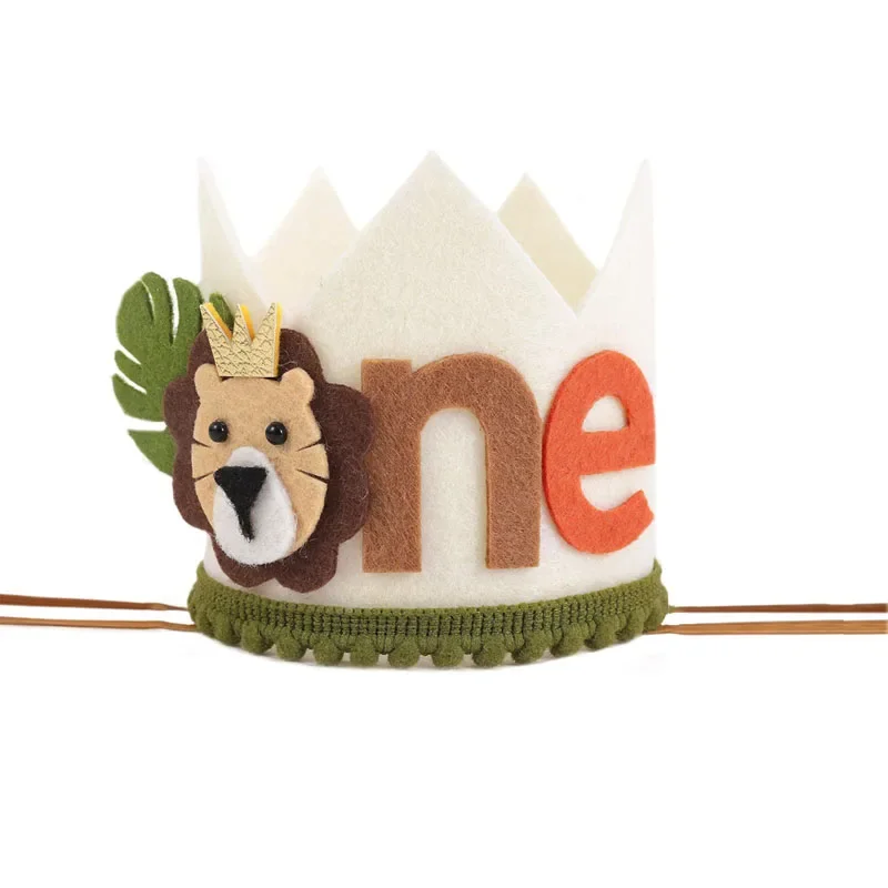 قبعة عيد الميلاد الأولى لتاج الأسد الأول للأولاد Wild One Theme Safari Animals لتزيين الحفلات دعائم كشك الصور
