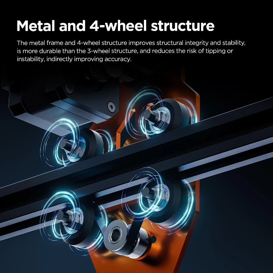 أكثر استقرارًا من 3 عجلات - تصميم يقلل من الاهتزاز ويعزز الدقة.