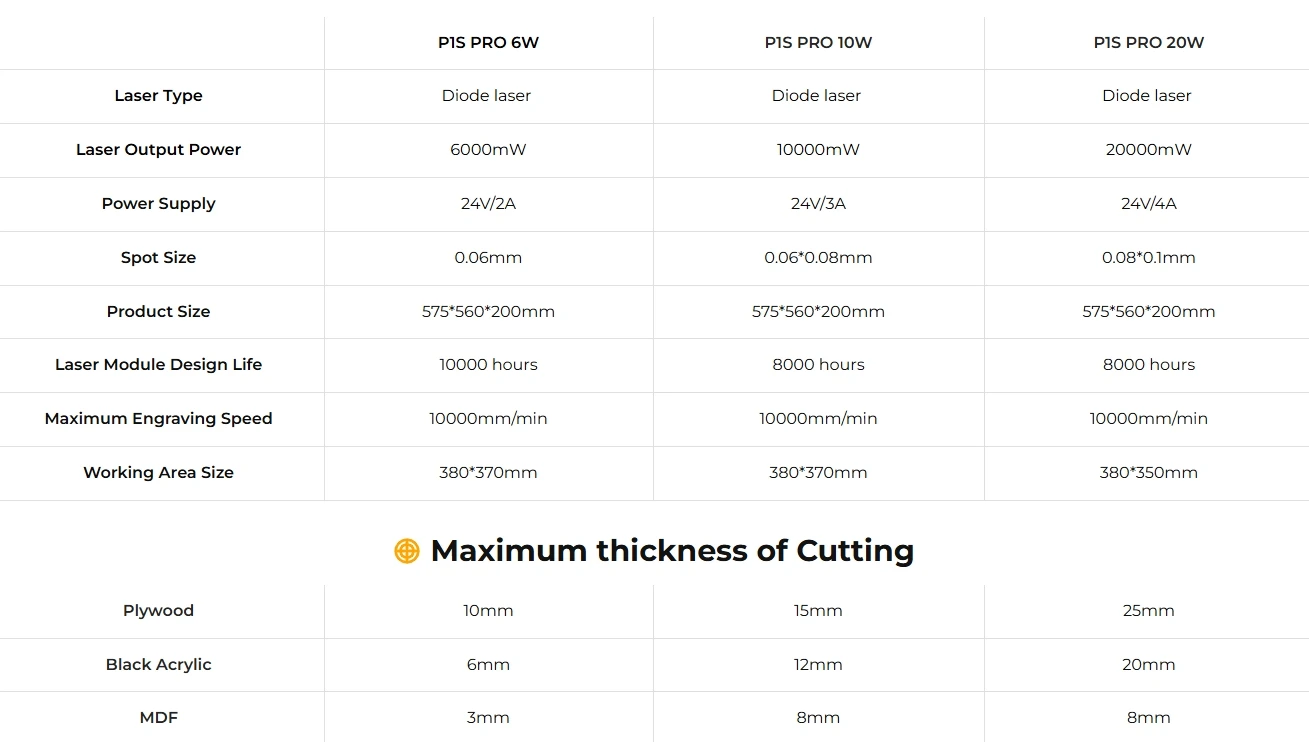 القطع الأعمق: 10 مم خشب رقائقي، 6 مم أكريليك، 5 مم MDF (مقابل العمق الضحل للمنافسين).