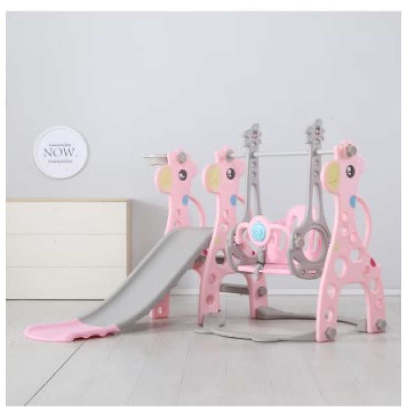 زحليقة علي شكل غزال مع مرجيحة , حلقة كرة سلة و موسيقى 4*1 ,155*140*105سم زهري