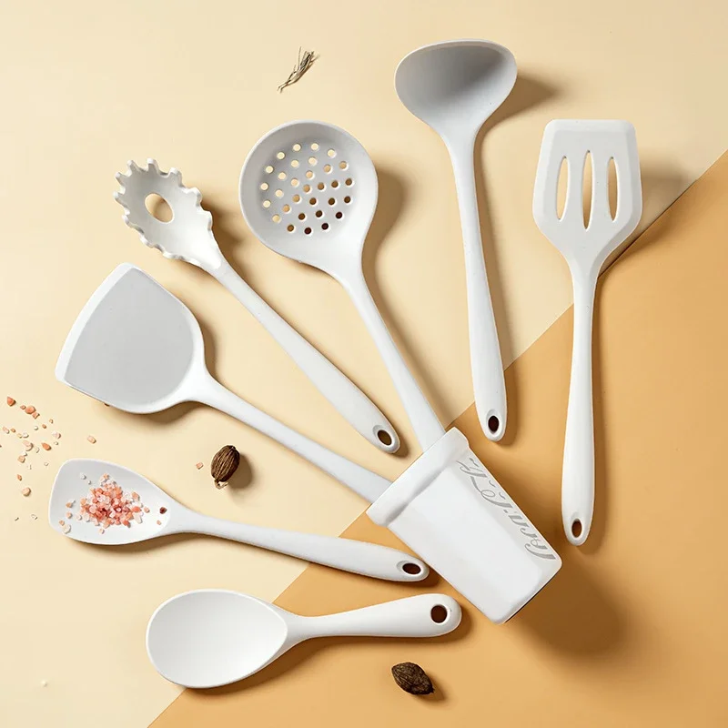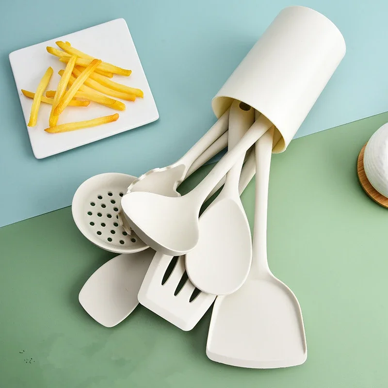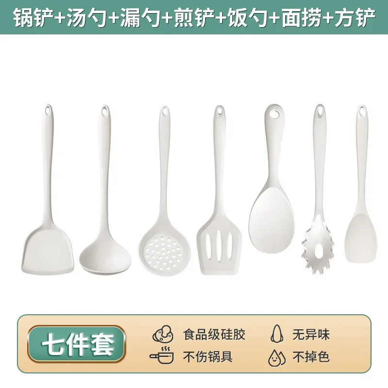 7 قطعة مقبض طويل سيليكون أداة الطبخ مجموعة المنزل ملعقة أرز القلي ملعقة مصفاة مغرفة حساء رواية اكسسوارات المطبخ
