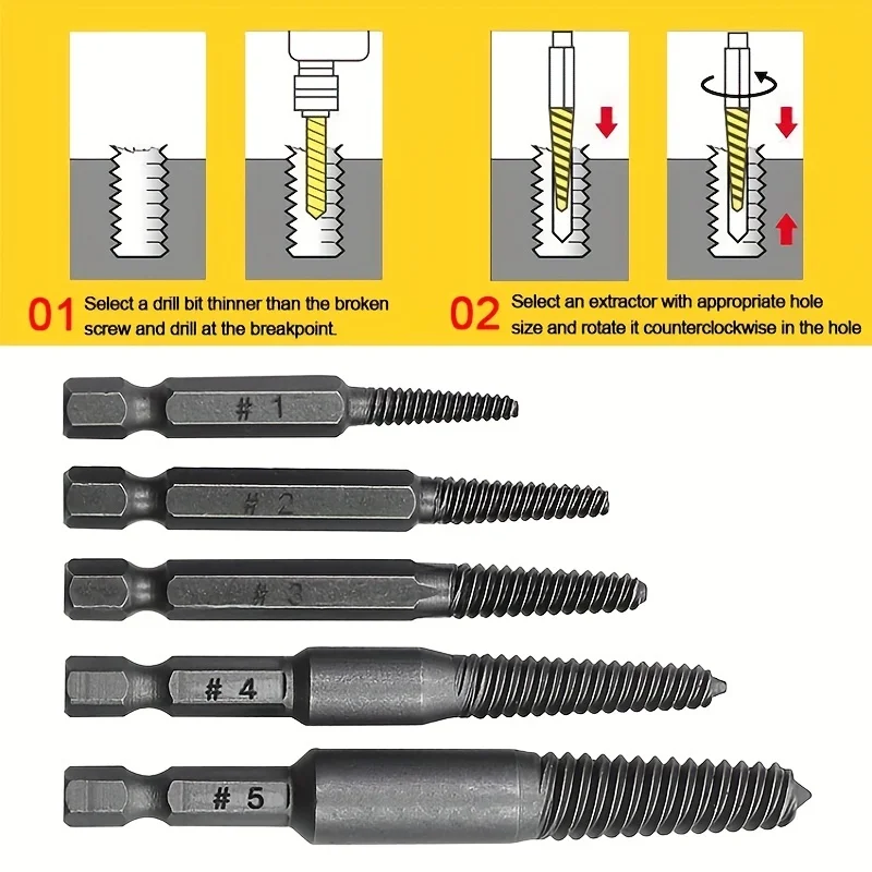 مركز لقم الثقب دليل مجموعة ، مزيل الترباس التالفة ، عرقوب عرافة ومفك البراغي ، أداة اليد المكسورة ، 5 قطعة