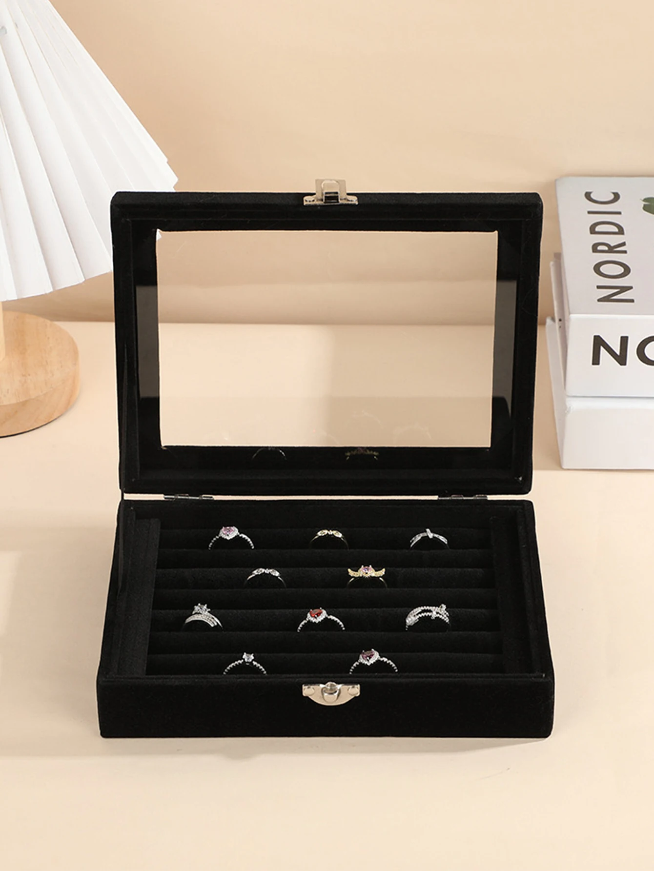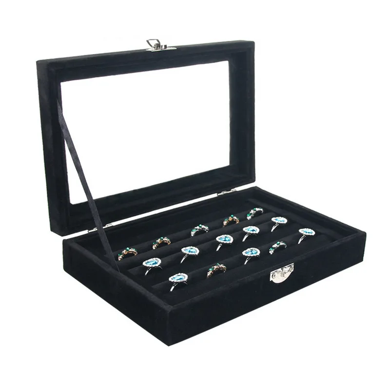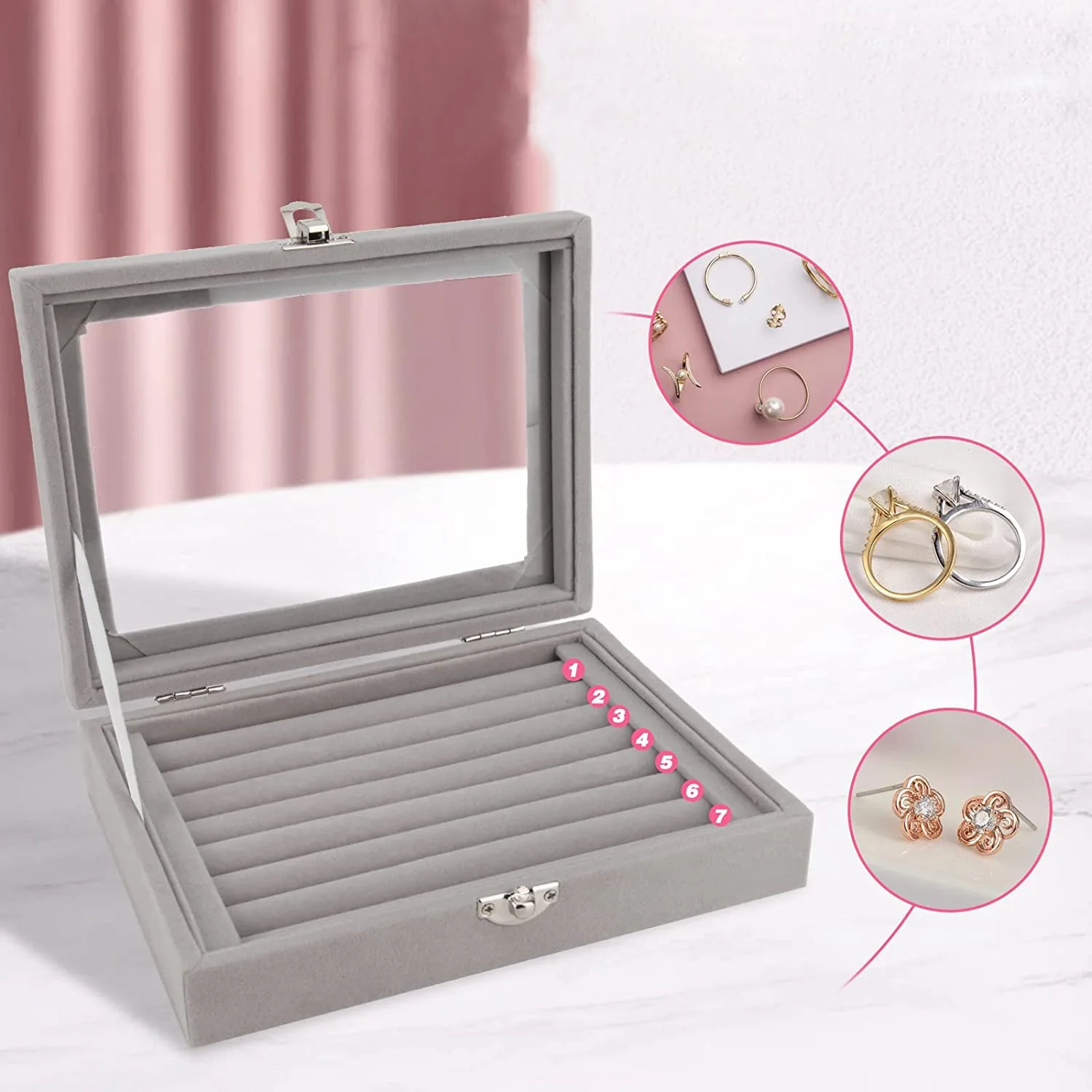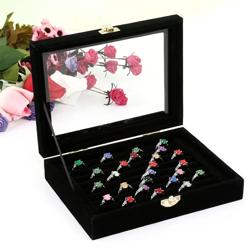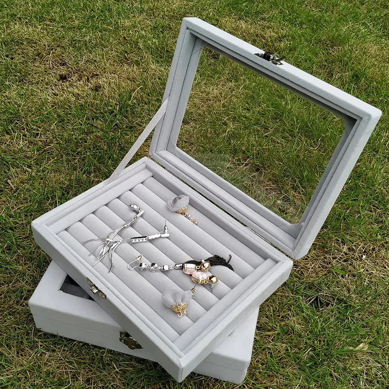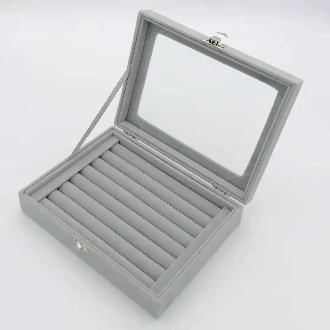 1 قطعة صندوق تخزين المجوهرات بالجملة صندوق عرض المجوهرات المنزلية مع منظم مجوهرات خاتم قلادة مغطاة