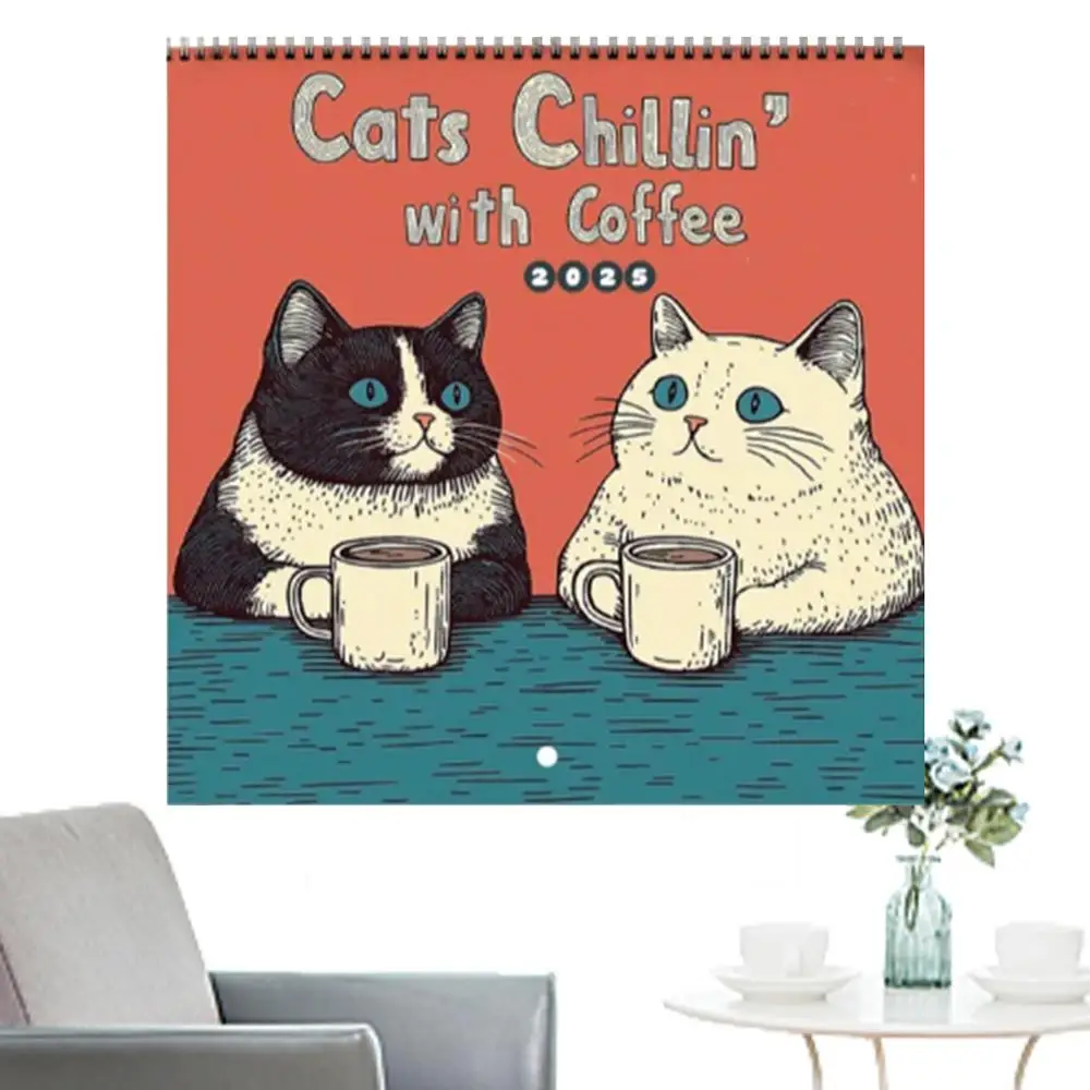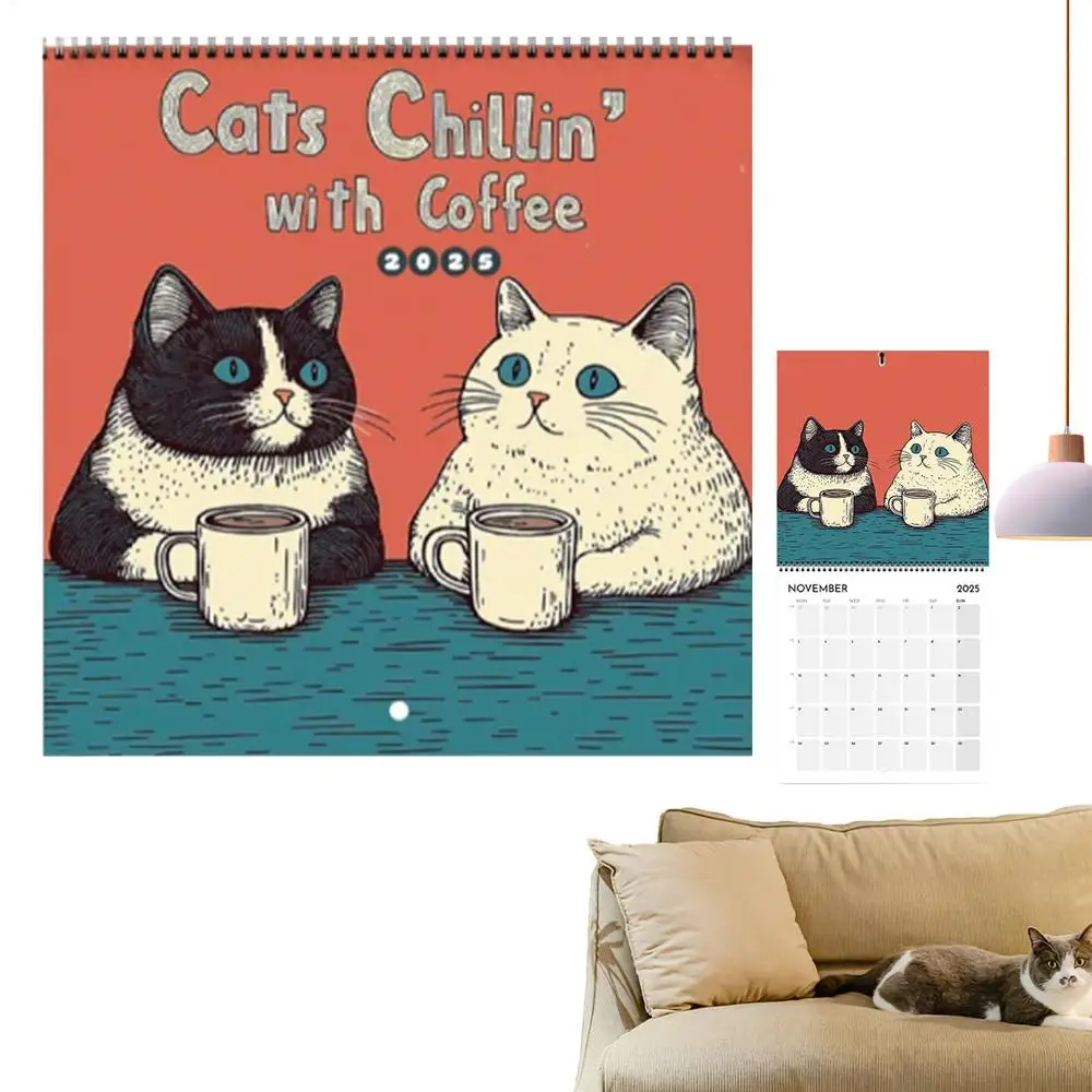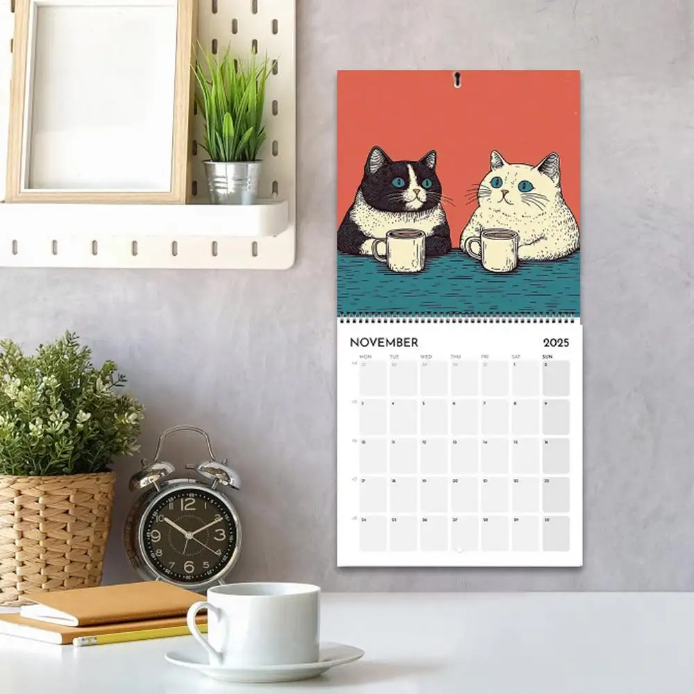 تقويم الحائط 2025 تقويم جداري شهري قابل للتعليق بتصميم قطة شهريًا ومنظم مخطط عائلي لمدة 12 شهرًا لغرفة النوم