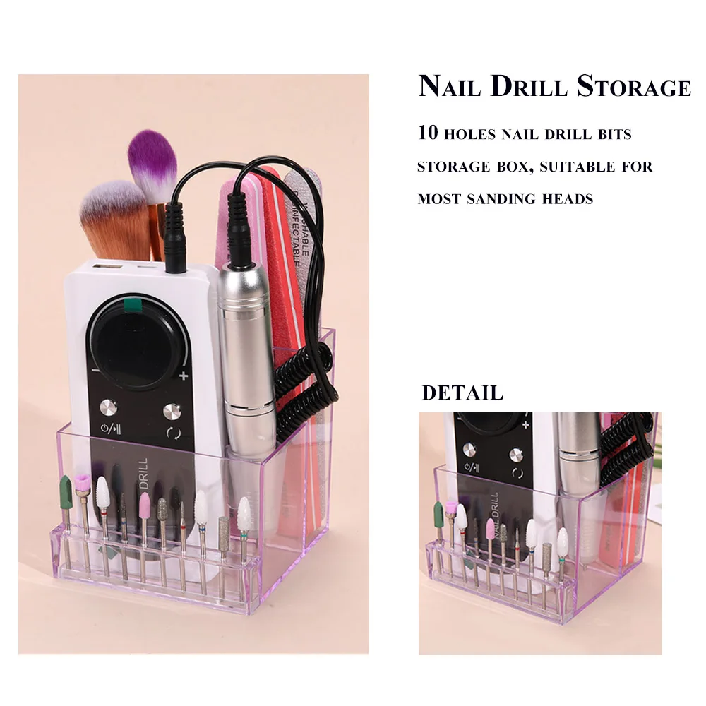 المواصفات : الاسم: عرض حامل لقم مثقاب الأظافر الحجم: 10.2 سم * 10 سم * 9.7 سم المواد: البلاستيك الألوان: أبيض شفاف، أر...