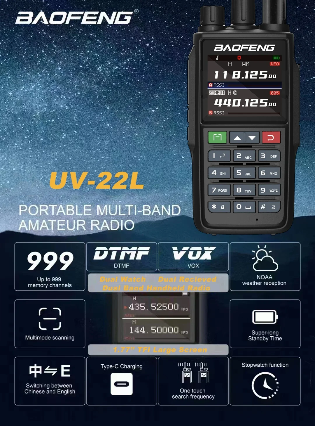 Baofeng UV-22 الرياضة في الهواء الطلق اتجاهين رادي طويل المدى يده أمبير الاتصالات أمبير مجموعة أجهزة الراديو على هاتف الاتصال الداخلي ثنائي الاتجاه