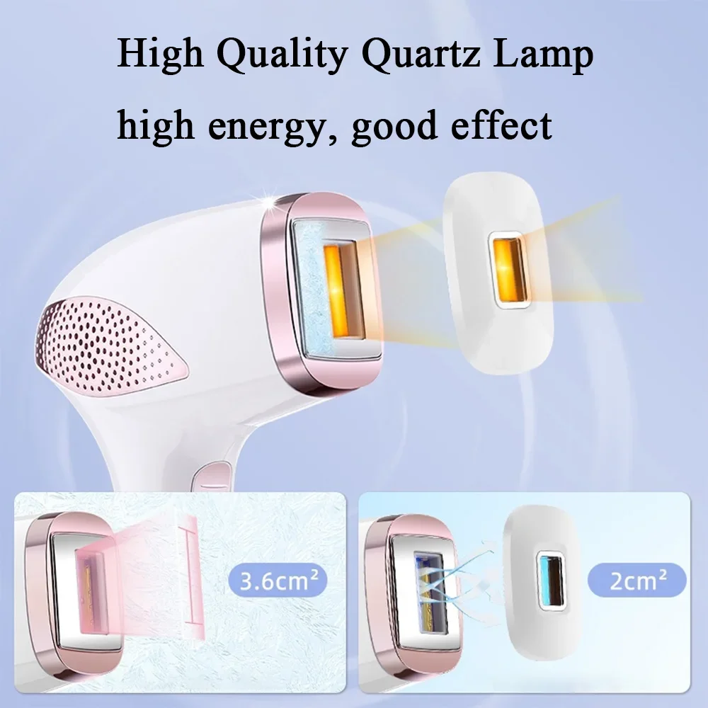 IPL Technology 100% Safe on Your Skin:This latest IPL hair removal technology guarantees you complete safety compared to other methods of permanent hair removal. This laser hair removal machine with ICE cooling function allows it to be used for hair removal without damaging. Wear the goggles when using the hair removal device.