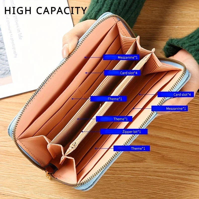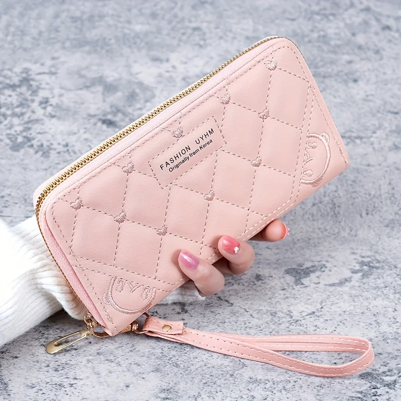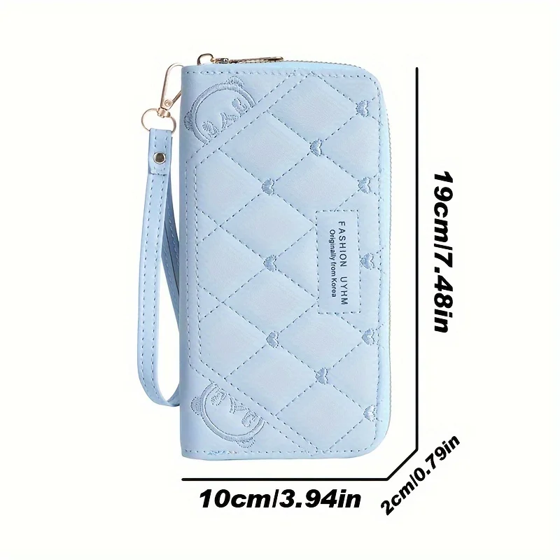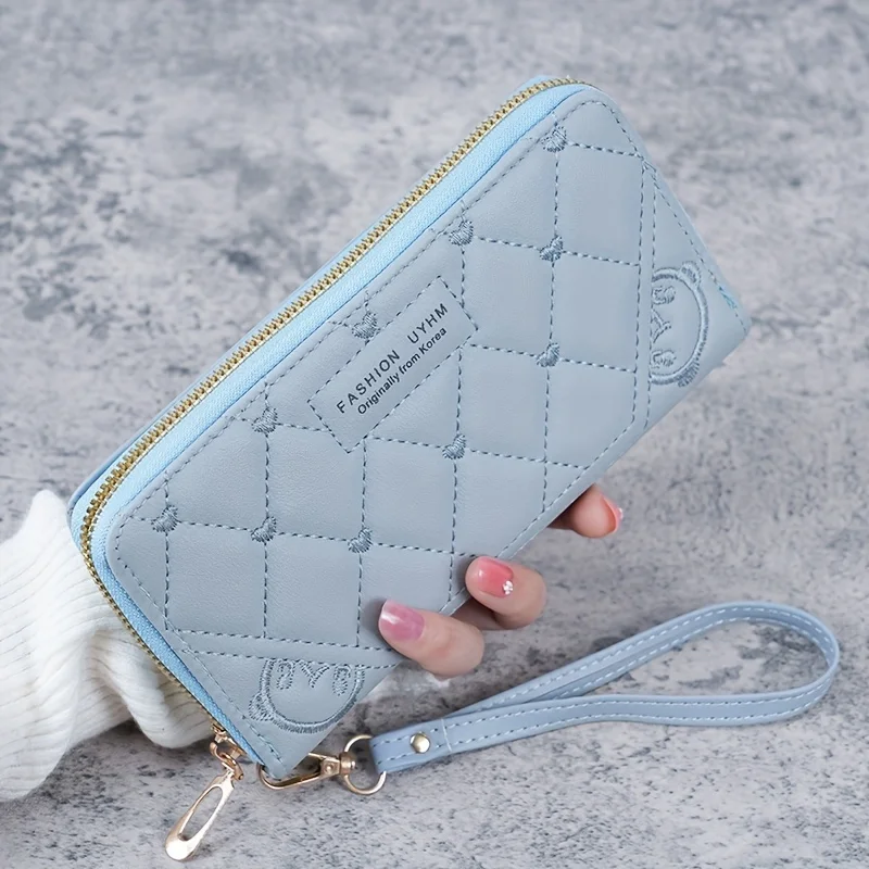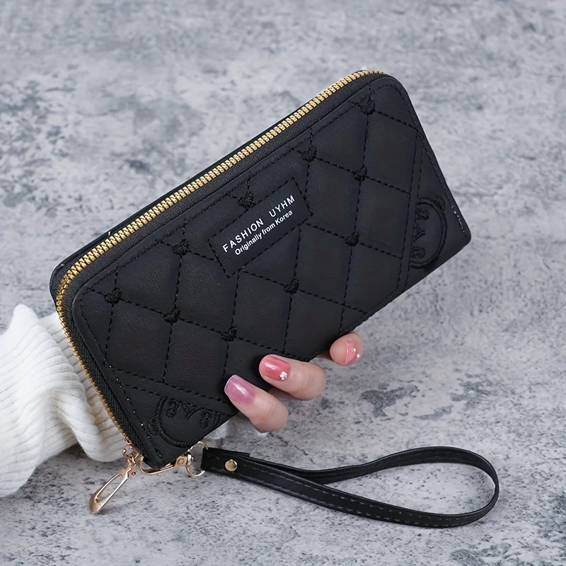 محفظة نسائية أنيقة من جلد البولي يوريثان مع سوار معصم، سحاب إغلاق، منظم هاتف ذو سعة كبيرة